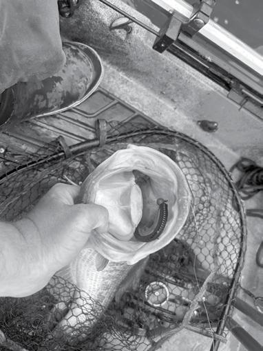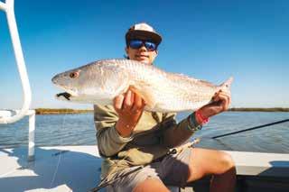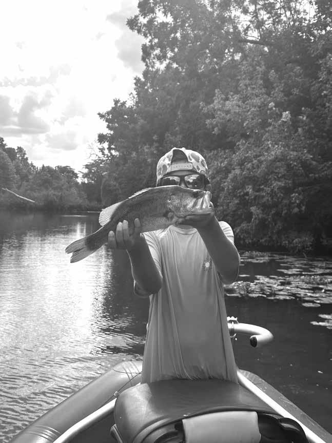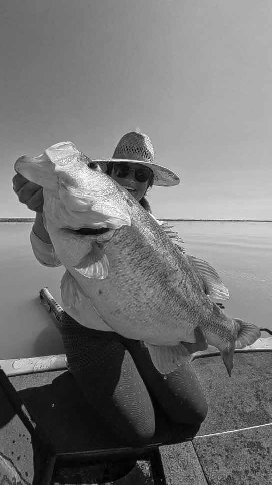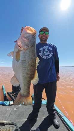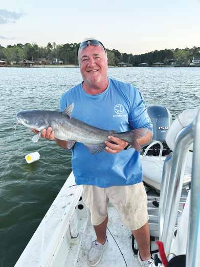 “When I can get them, I like live perch. That’s my favorite bait,” Meuth said. When he cannot get ahold of live perch, cut mullet, shrimp, or gaspergou have been ef fective as well. Meuth has been targeting the large flats where tributaries feeding into the lake meet. Meuth said don’t be afraid to move around on the flat until you find them.