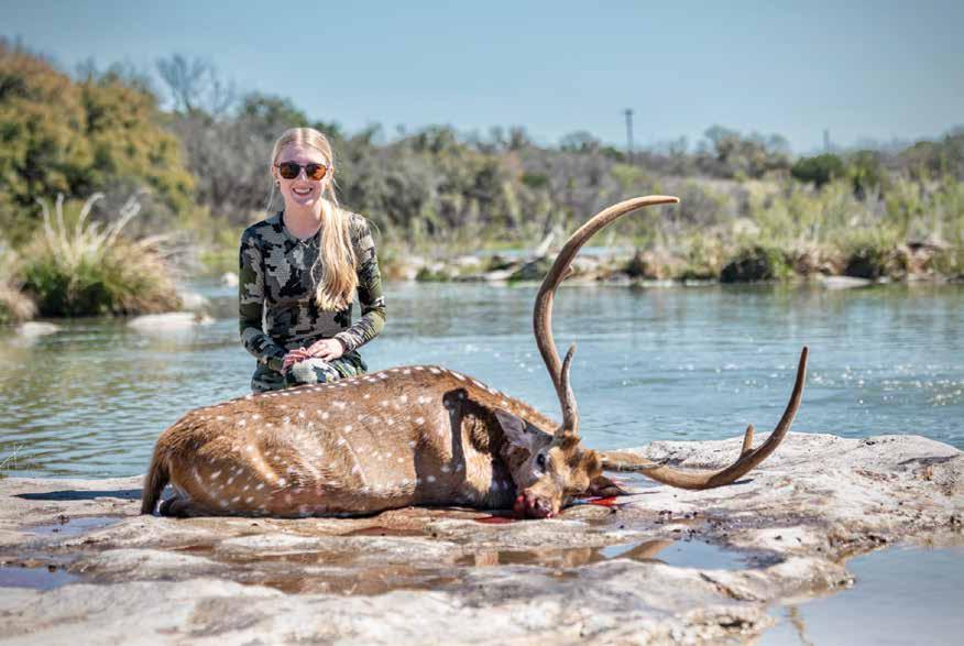 She’d been dreaming about an axis hunt for more than three years, and when her dad, Jus tin, won a raffle hunt at a local event, a Christ mas present for Lakely was presented for an axis hunt with TO Outfitters.