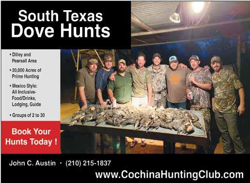 “We do spring dove surveys that are datadriven by eco-region every year for the past five years,” he said. “I think we are looking very good for the upcoming season. The rains and storms may have taken a toll on some nests, but they came at the right time and as conditions remain good, those birds (that lost a nest) should continue nesting.”