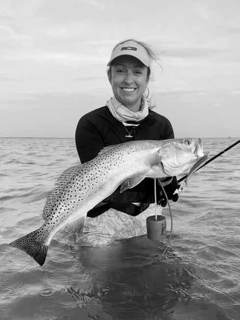 Erica Garza has been wade fishing along the Lower Laguna Madre from the mouth of the Arroyo to Port Mansfield and further north, where she has been catching speckled trout in kneeto-waist deep water on soft plas-