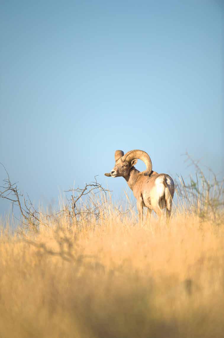 some of the largest concentrations of free-ranging aoudad in the state. About one mile and a few hundred feet in elevation gain is all that separated Chad Pulsifer, of Pueblo, Colorado, and the aoudad ram he came to the region to pursue.