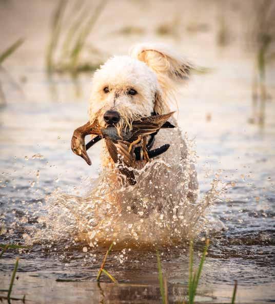 Millie, Joe Link’s golden doodle, retrieves a teal during the opening weekend of early teal season. Photo by Nate Skinner, for Lone Star Outdoor News.