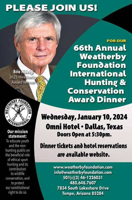 Page 24 September 22, 2023 LoneOStar Outdoor News LSONews com Conservation Through Hunting DSC is a mission-focused conservation organization, funded by hunters from around the world. Every year, DSC hosts its annual Convention that raises funds for grants in conservation, education, and advocacy. To become a member or learn more about DSC, head to biggame.org. Mark your calendars! DSC 2024 Convention – January 11-14