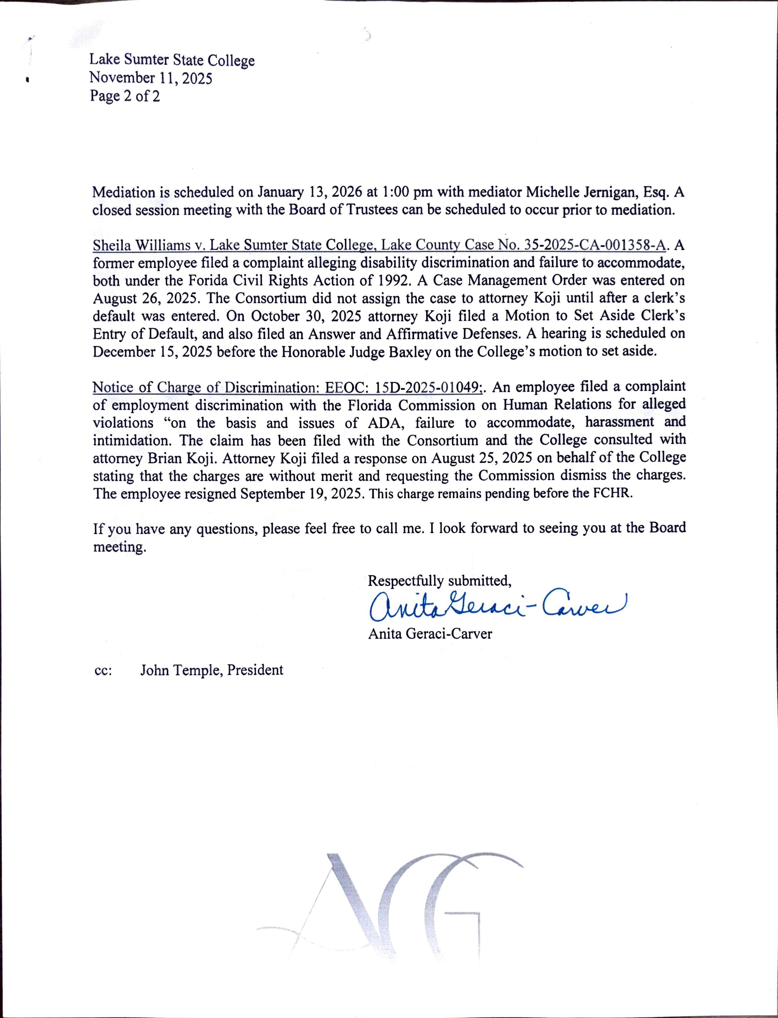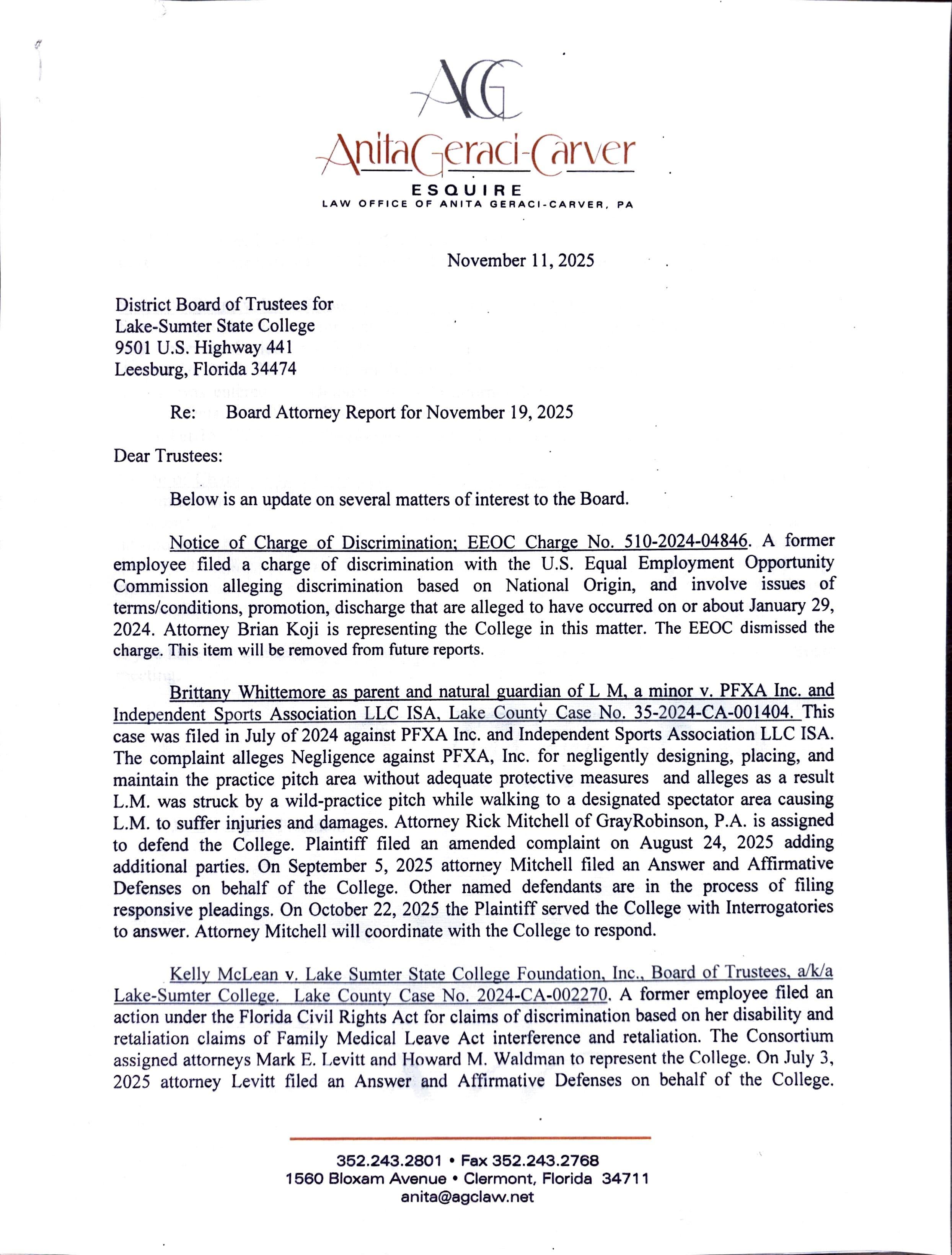 ON BEHALF OF THE DISTRICT BOARD OF TRUSTEES OF LAKE-SUMTER STATE COLLEGE