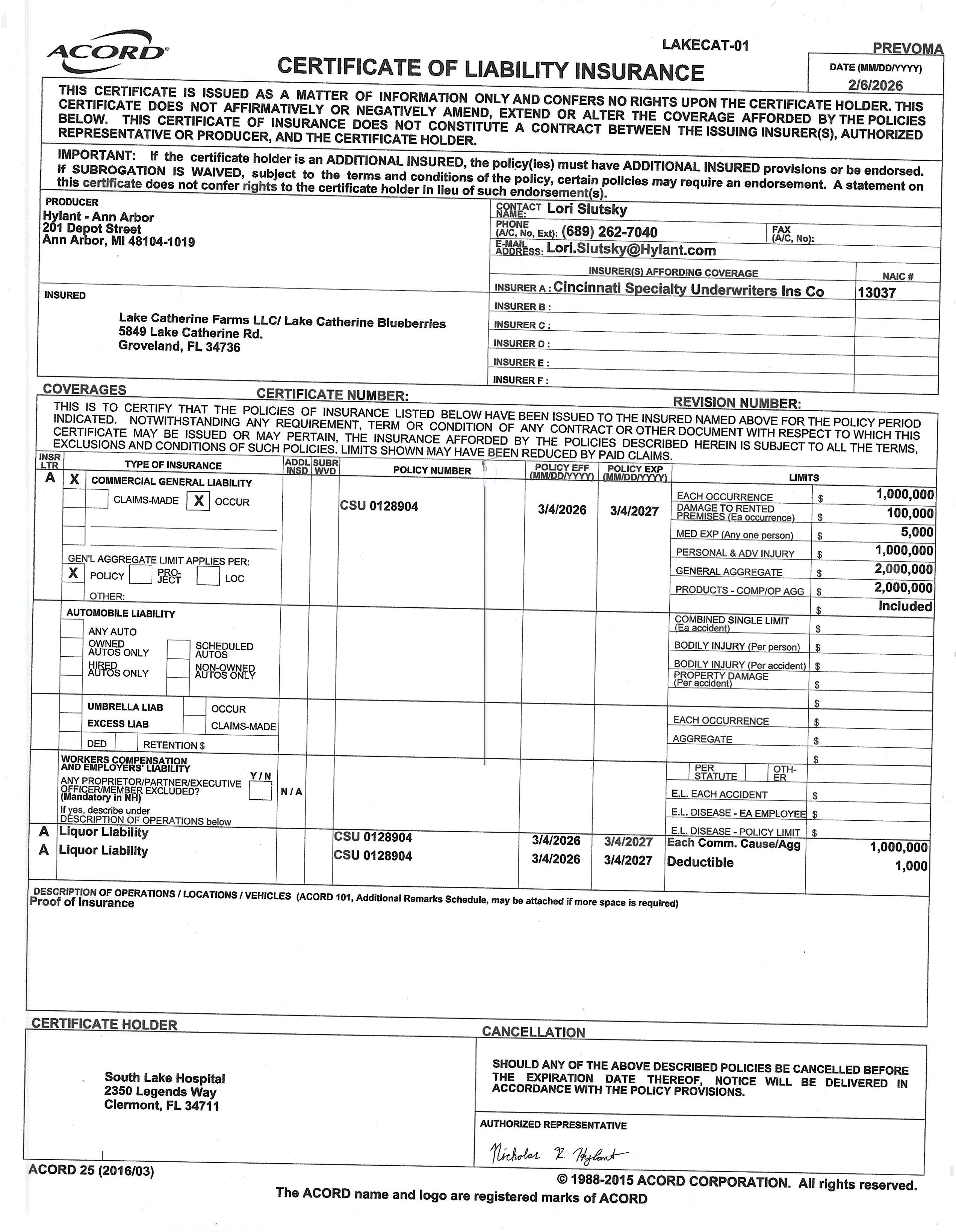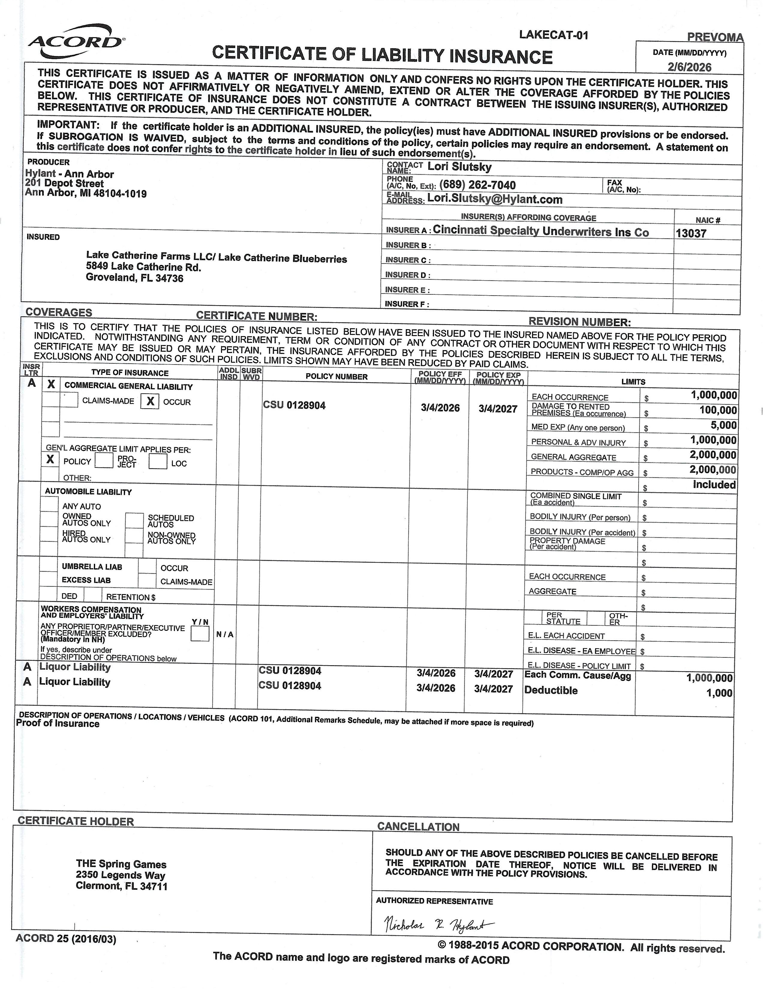 THE CATERER HEREIN IS LICENSED UNDER THE PROVISIONS OF CHAPTER 565, FLORIDA STATUTES
