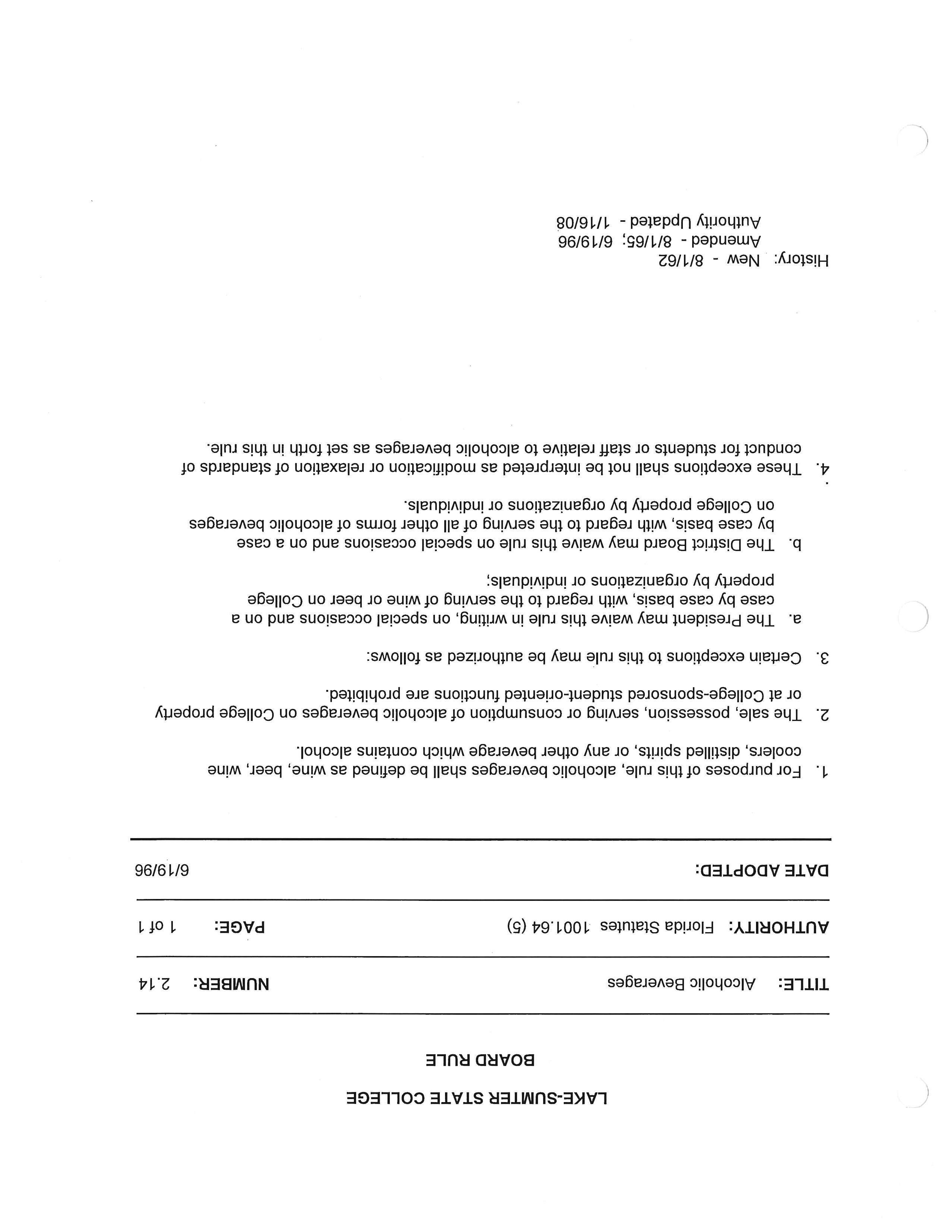 3b) The District Board may waive this rule on special occasions and on a case-by-case basis, with regard to the serving of all other forms of alcoholic beverages on College property by organizations or individuals.