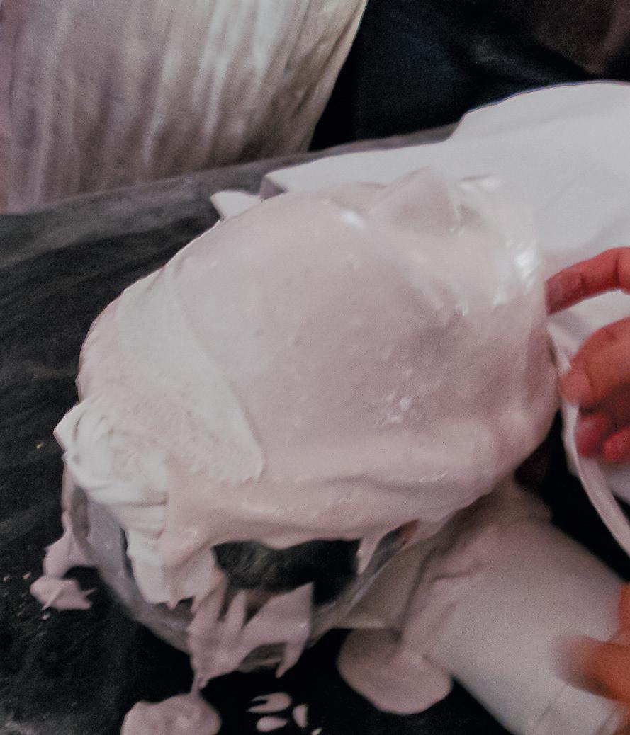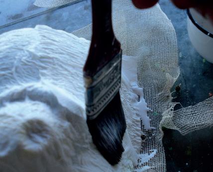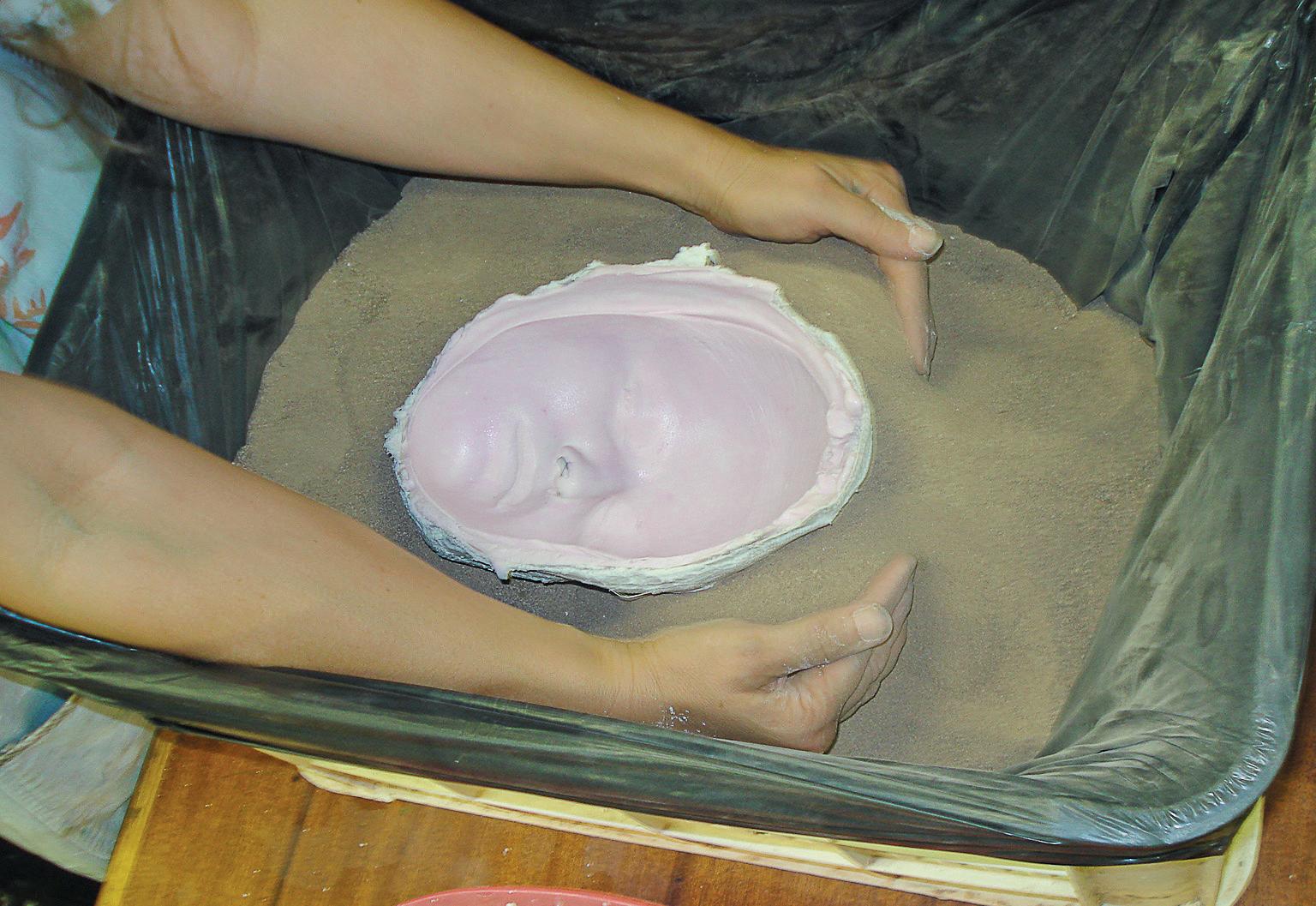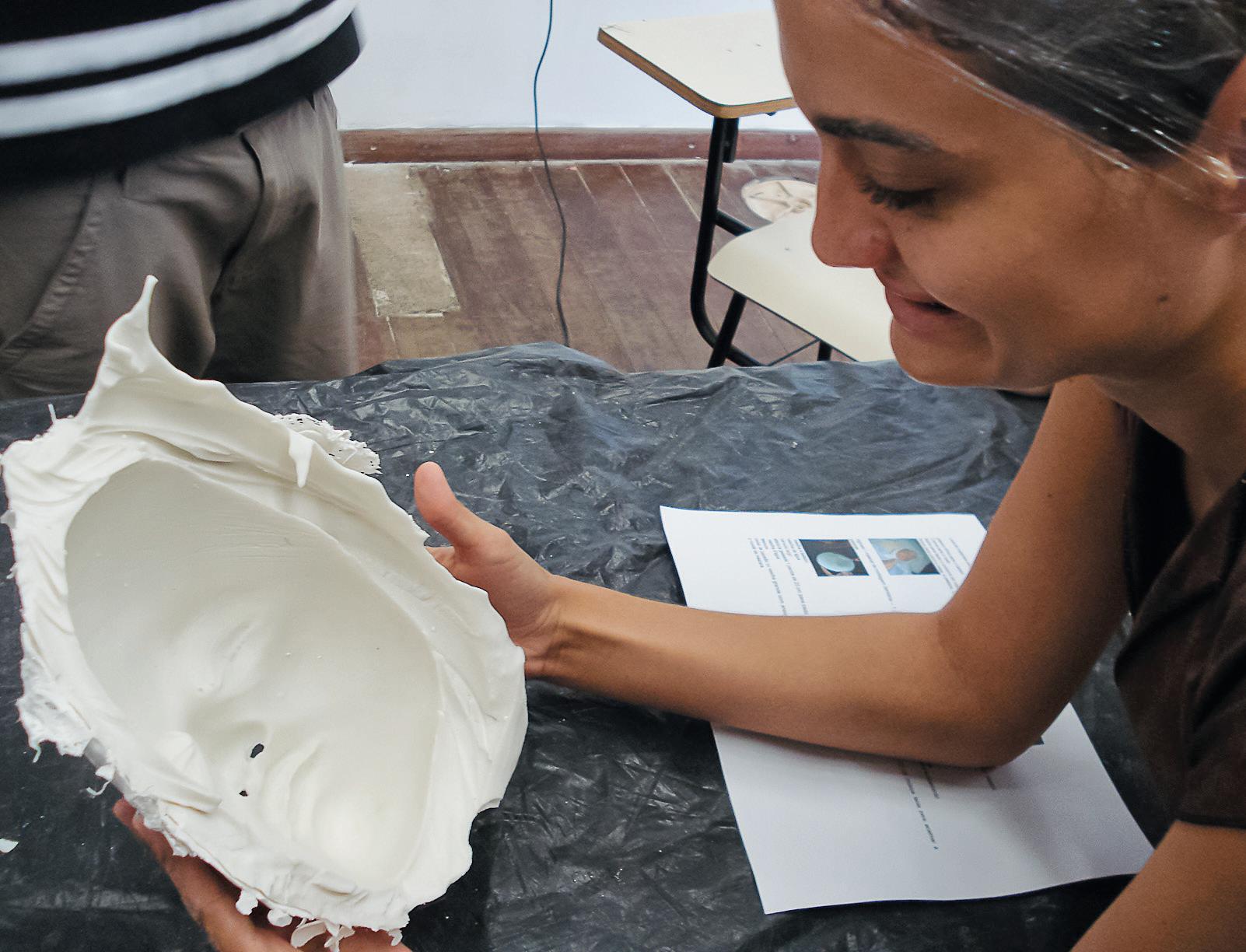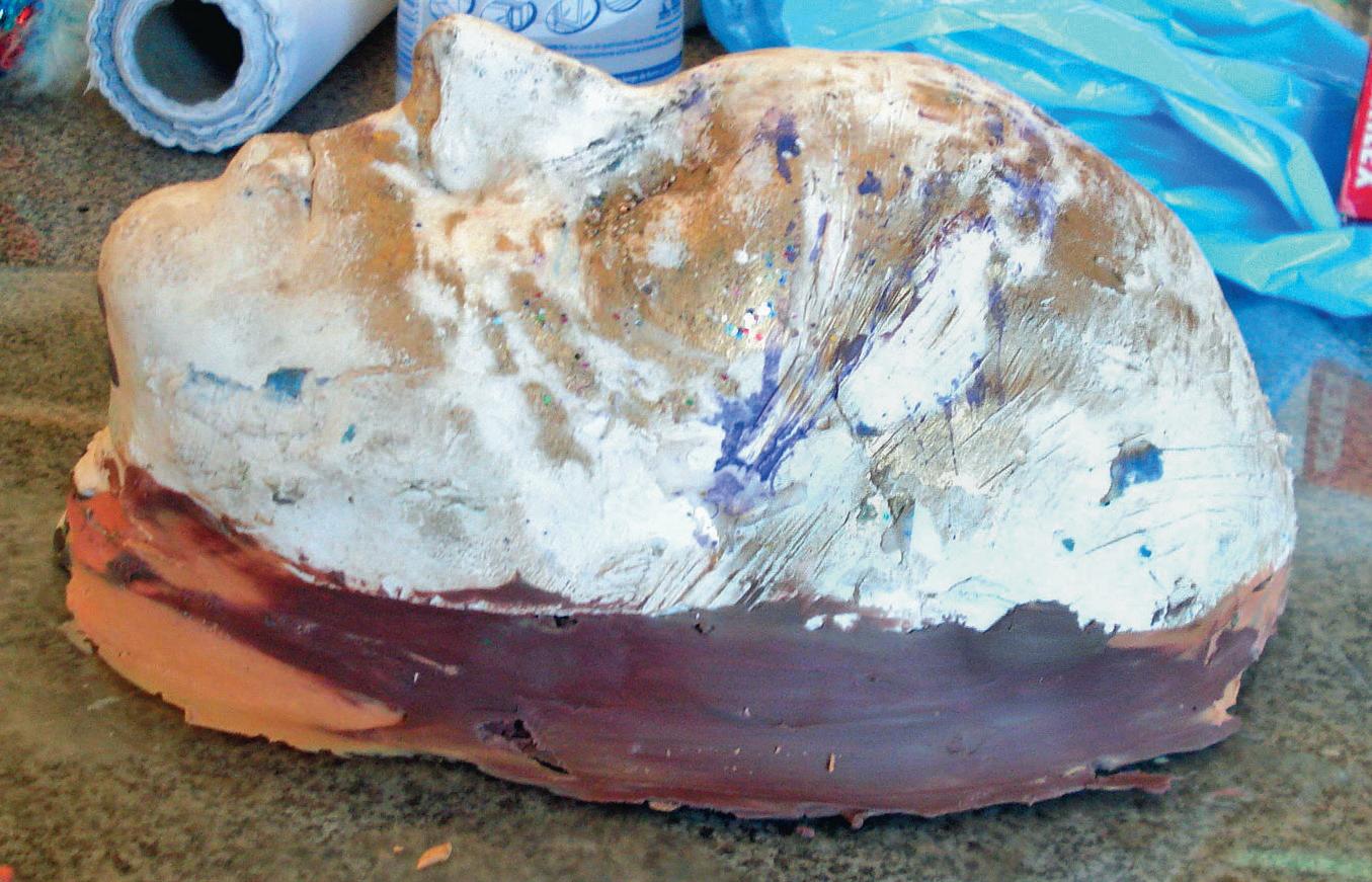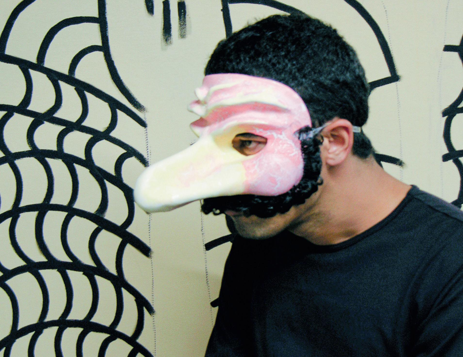 Produção e galeria de máscaras: apresenta a técnica de cópia do rosto, modelagem sobre o molde do rosto e explica como empapelar