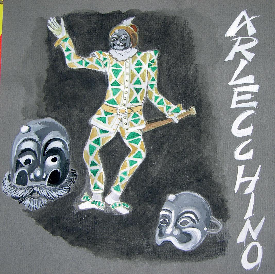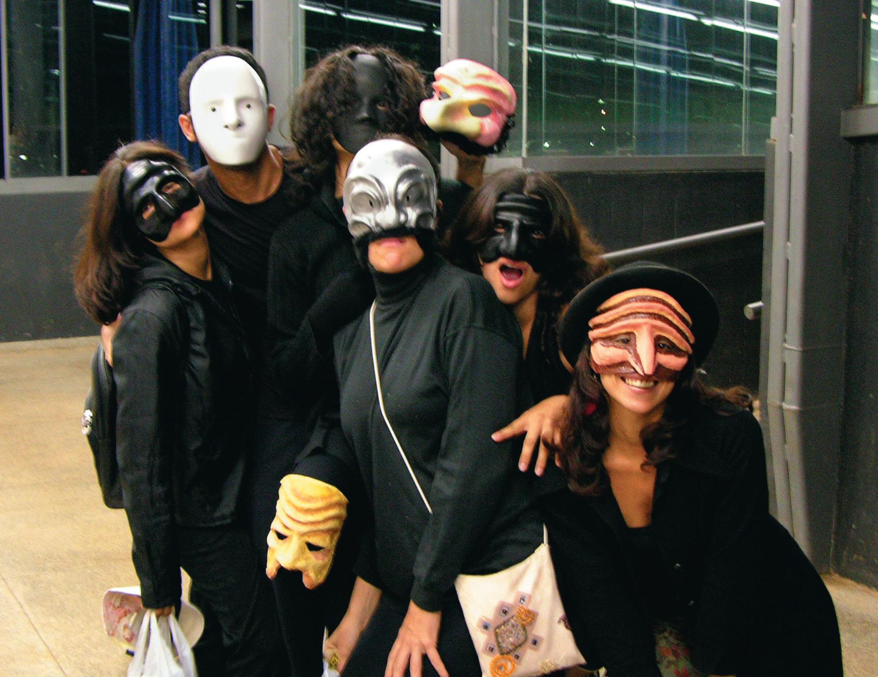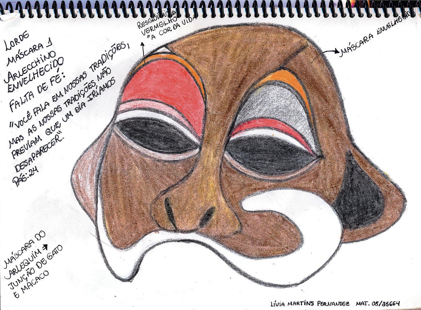 Sinopse do trabalho: Com o objetivo de conhecer teórica e praticamente os conceitos, funções e estéticas da Commedia dell’arte, o grupo estudou os símbolos e esteriótipos tradicionais, como também os novos, criados a partir da Commedia dell’arte pelo o homem contemporâneo e que são repetidamente utilizados pelo cinema e TV, pelas artes plásticas, pela internet e pelo teatro. Cada integrante desenvolveu um tipo de máscara relativo à Commedia dell’arte: Arlequim, Zanni Briguela, Ragonda e Capitano. Para o acabamento final, o grupo decidiu que a máscara deveria ter um aspecto natural, ou seja, a pintura ou o material deveria imitar ou ser de folhas, madeira, couro