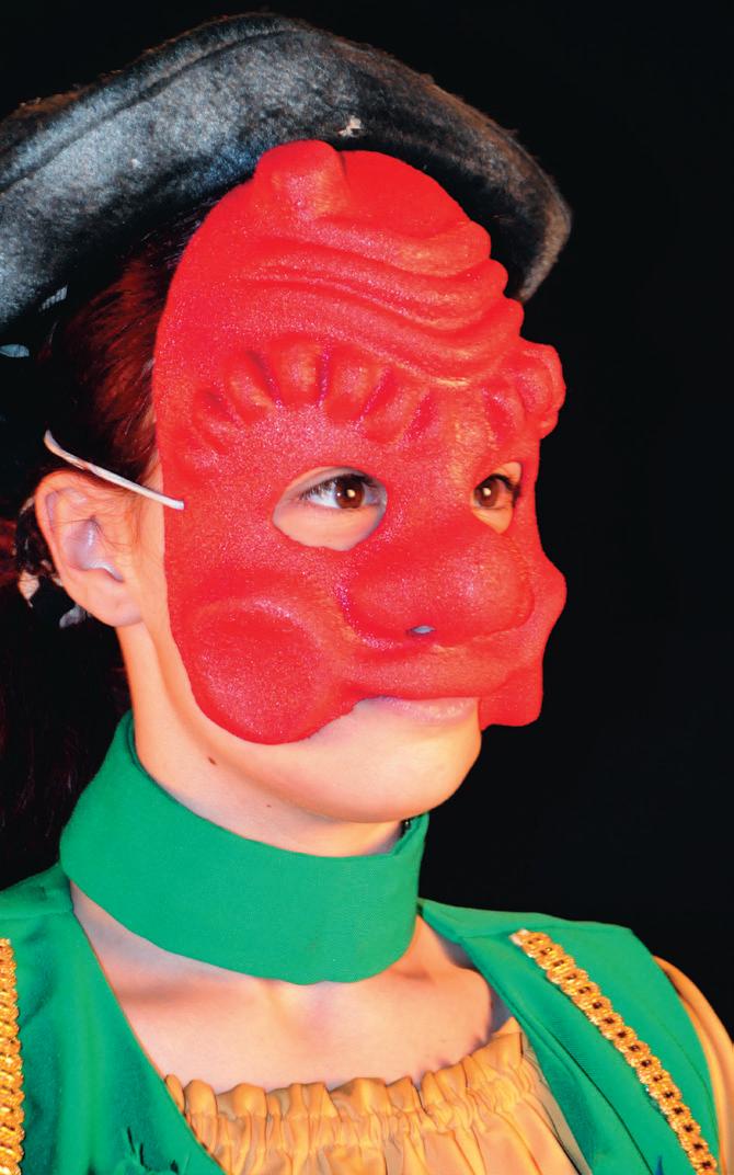 Sinopse do trabalho: Confecção de máscaras a partir do estudo da literatura de cordel brasileira. Com base no texto de Rodolfo Coelho Cavalcanti A menina que bateu na mãe e virou cachorra, o grupo criou máscaras que imitaram as matrizes de madeiras das xilogravuras – técnica tradicionalmente usada para a impressão dos cordéis