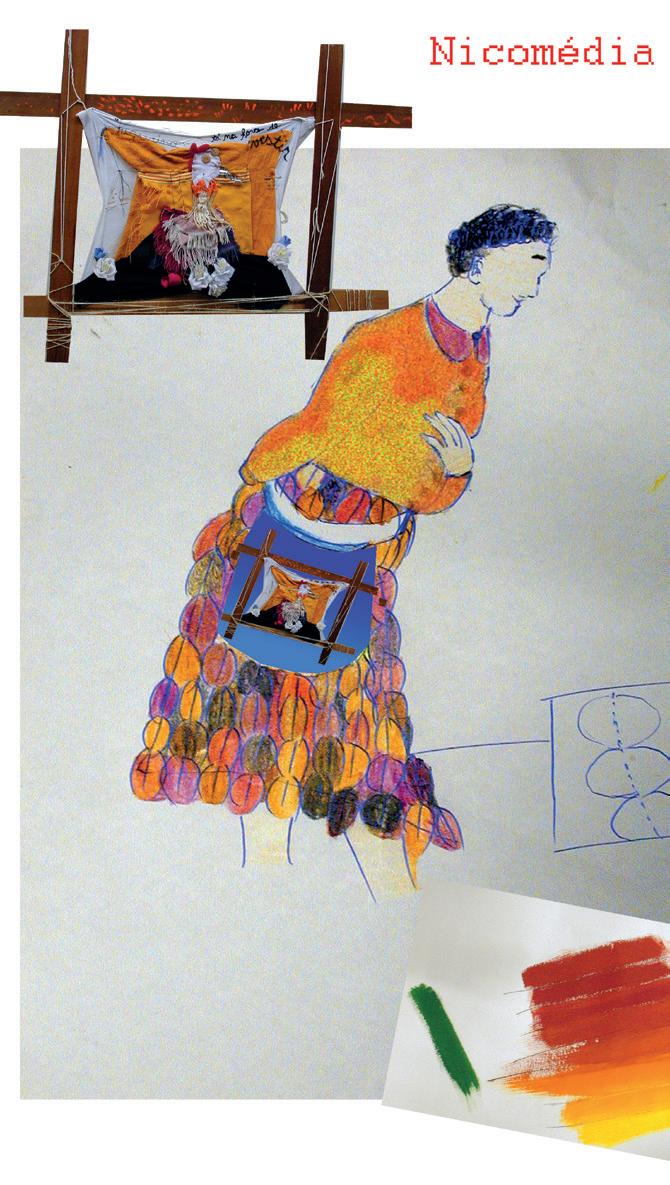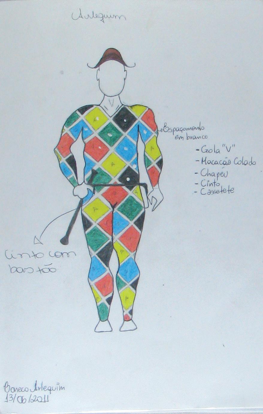 Sinopse do trabalho: Resultado do projeto na disciplina Introdução às Técnicas Teatrais, projeto consiste na construção de máscara e figurinos para as personagens da obra de Alcione Araújo. O trabalho tem influência da obra de Pablo Picasso, Família de Saltimbancos , e da Commedia dell’arte, tanto no figurino e nas máscaras
