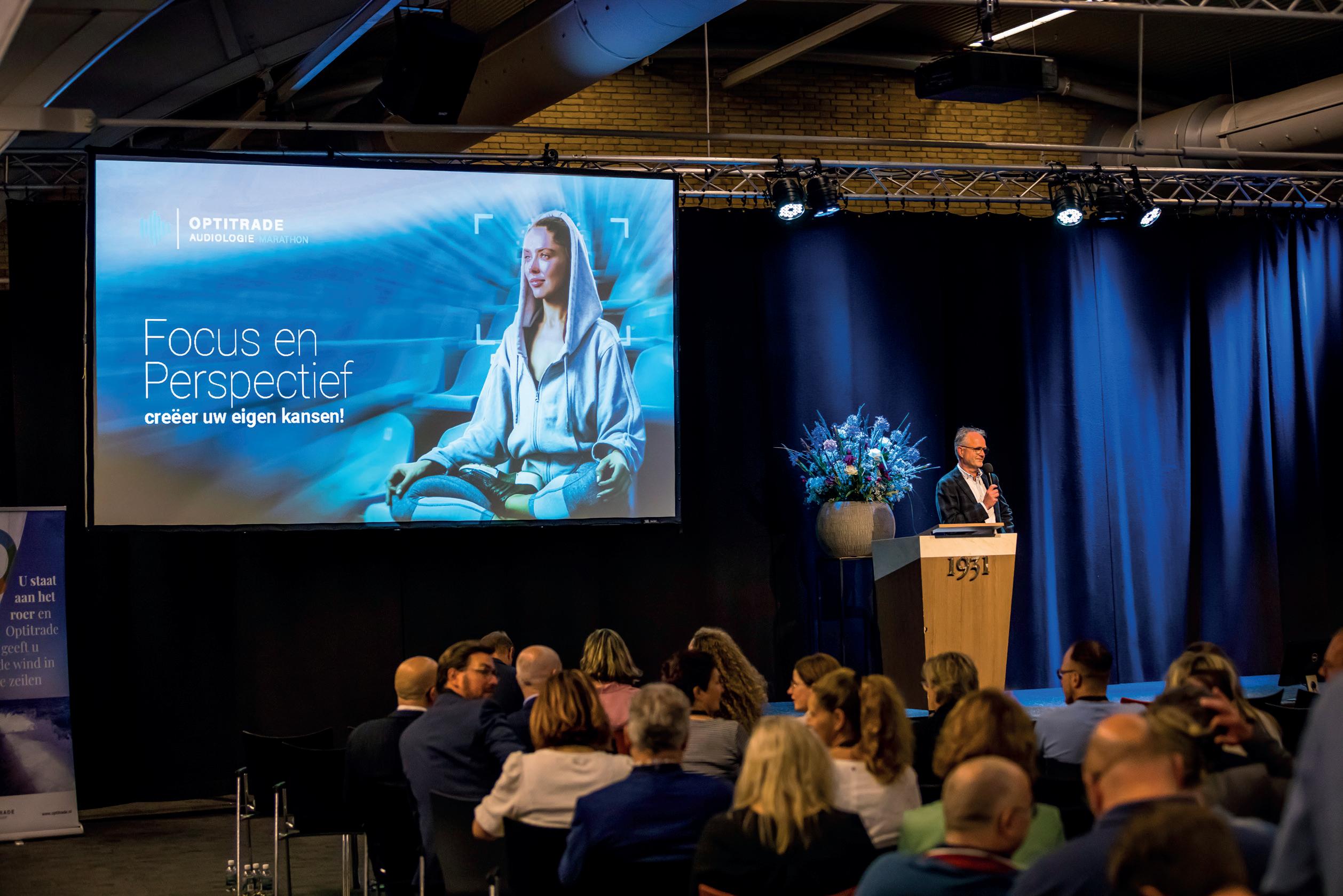 De dag ging dynamisch van start met presentaties van Optitrade-directeur Pim Föster, Product Manager Audiologie Demelza Rapmund en Mirjam Jans van GN, gevolgd door een retailmarkt update van GfK en – last but not least – een verrassende en erg boeiende ‘les’ in mentale veerkracht, door Michael Kortekaas. “Ondanks de moeilijke markt en de concurrentie van de ketens hebben de zelfstandige audiciens toch een mooie plek in de markt”, opent Pim. “Waar wil je je op focussen: je locatie, leveranciers, wellicht een combiwinkel? En als we naar de toekomst kijken: hebben we dan perspectief? Daar kom je vandaag achter”. Demelza ging dieper in op de diverse aspecten waar je je als audicien op kunt focussen: de cijfers, de consument, marketing, groei, samenwerking, je team.