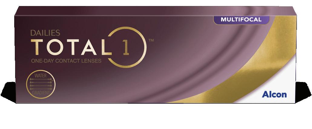 * Les résultats varient d’une personne à l’autre et peuvent être influencés par d’éventuelles affections préexistantes. Références : 1. Based on a clinical performance evaluation of TOTAL30® Multifocal contact lenses; Alcon data on file, 2022. 2. Lemp J, Kern J. Alcon multifocal contact lenses for presbyopia correction. Paper presented at the Canadian Association of Optometrists Congress; June 28-30, 2017; Ottawa, ON. 3. In a clinical study wherein patients used AOSEPT solution for nightly cleaning, disinfecting, and storing; Alcon data on file, 2021. 4. Perez-Gomez I, Giles T. European survey of contact lens wearers and eye care professionals on satisfaction with a new water gradient daily disposable contact lens. Clin Optom. 2014;6:17-23. 5. Angelini TE, Nixon RM, Dunn AC, et al. Viscoelasticity and mesh-size at the surface of hydrogels characterized with microrheology. Invest Ophthalmol Vis Sci. 2013;54:E-abstract 500. 6. In vitro analysis of lens oxygen permeability, water content, and surface imaging; Alcon data on file, 2021 7. In vitro analysis of lehfilcon A contact lenses outermost surface softness and correlation with water content; Alcon data on file, 2021. 8. Thekveli S, Qui Y, Kapoor Y, et al. Structure-property relationship of delefilcon A lenses. Contact Lens Anterior Eye. 2012;35(Suppl 1):e. Pour les indications, contre-indications et avertissements, veuillez vous référer aux instructions d’utilisation du produit concerné. Les lentilles de contact sont des dispositifs médicaux. © 2023 Alcon Inc. BNLX-T3M-2300012 11/2023 ~ 100% D’EAU À LA SURFACE 5-8 CONFORT DE PORT ULTIME 3,4* Lentilles journalières UNE VISION CONFORTABLE
