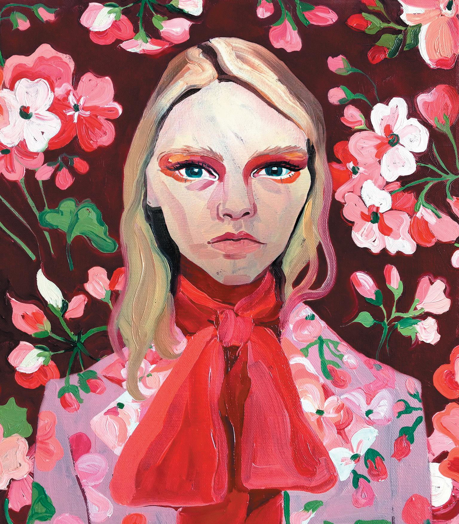 L’artiste londonienne est passée maître dans l’art de transmettre des émotions au travers des yeux de ses portraits. Elle a sillonné le monde, a organisé des expositions et s’est constitué un CV impressionnant dans l’univers de la mode. Elle a déjà peint, pour Dries van Noten, une série de panneaux représentant de multiples visages différents, en accordant encore une fois un rôle prépondérant aux yeux.
