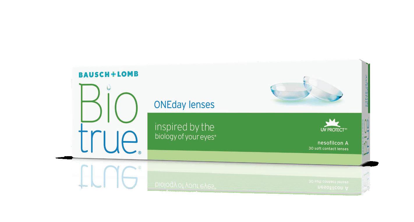* Based on ACLM Year book. 2019. 1. ACLM Year book. 2019. 2. Bausch + Lomb; 2012. Results from a 21 investigator, multisite study of Biotrue® ONEday lenses, with a total of 414 eligible subjects. After 7 days of wear, subjects completed an online survey. Consumers rated Biotrue® ONEday lens performance across a range of attributes and compared the performance to their habitual lenses. 3. Bausch + Lomb; 2012. Twenty-two subjects participated in a randomized, doublemasked, contralateral eye study to evaluate water loss of Biotrue® ONEday and 1-Day ACUVUE Moist contact lenses. After 4, 8, 12, and 16 hours of wear, lenses were removed and immediately weighed (wet weight). The lenses were then completely dried and reweighed (dry weight). The percent water loss was then calculated for each lens from the wet and dry weights. Bausch + Lomb contactlenzen en contactlensvloeistoffen zijn medische hulpmiddelen CE 0050. 34373