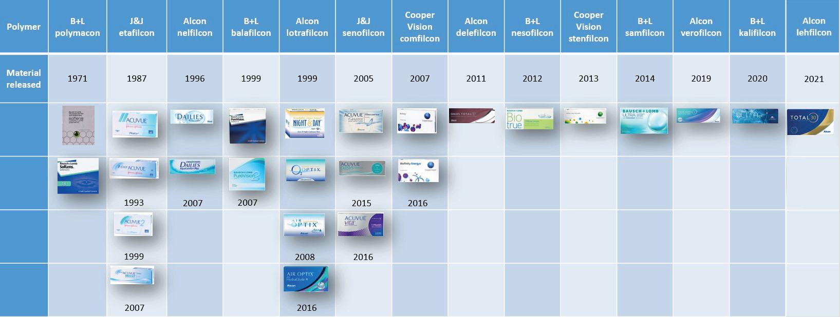 ENORME INVESTERINGEN GEDAAN IN CONTACTLENSTECHNOLOGIEËN DIE HEBBEN GELEID TOT NIEUWE GENERATIES SILICONE HYDROGEL LENSMATERIALEN EN DAAROP AFGESTEMDE