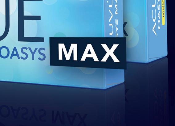 willen steeds langer lenzen dragen. De kans op comfortklachten neemt daardoor toe. Dankzij ons OptiBlue™ lichtfilter en de TearStable™ technologie1 is ACUVUE® OASYS MAX 1-Day ongekend comfortabel”.
