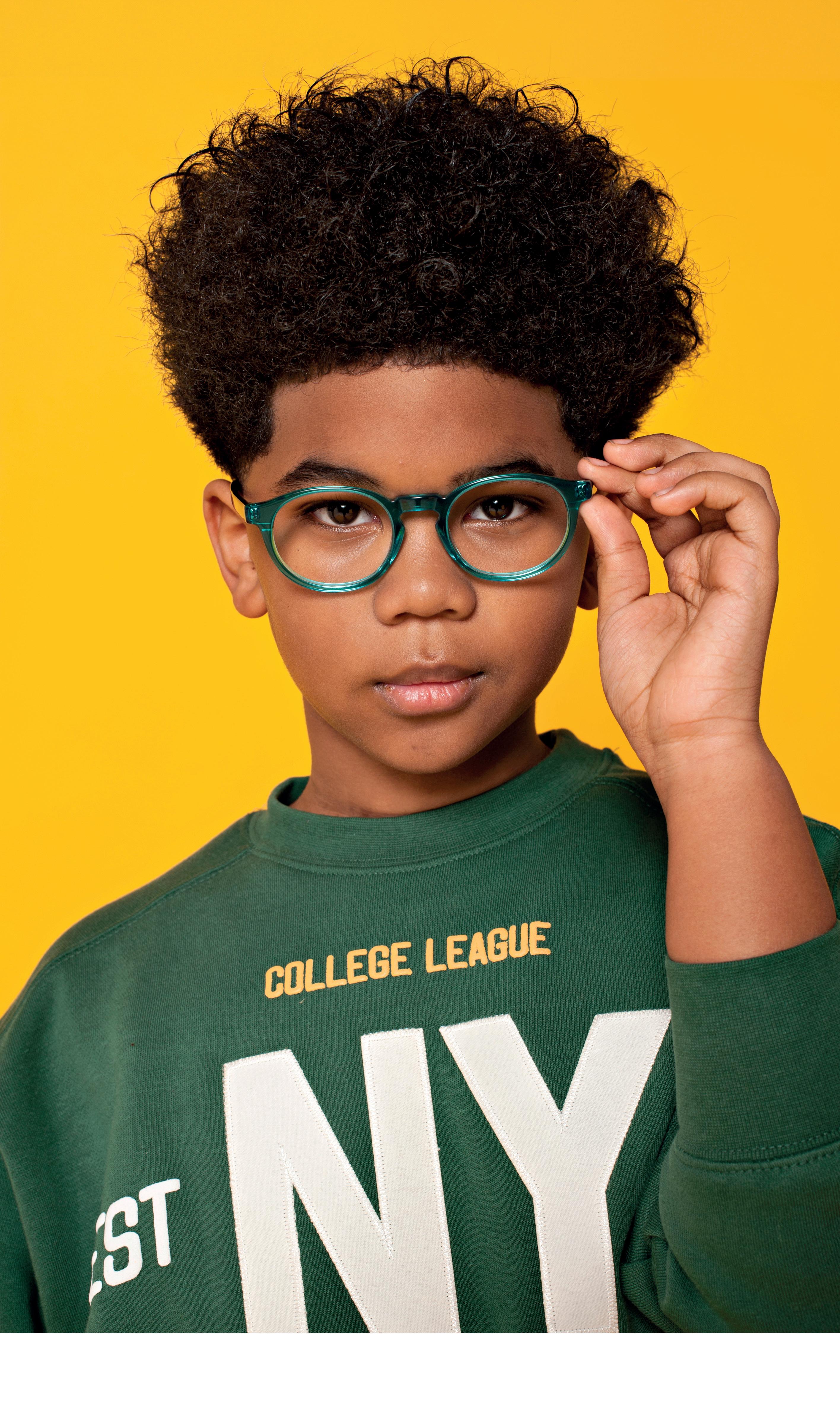 Hoe kiezen kinderen een bril? “Bij heel kleine kinderen vinden we de pasvorm het belangrijkst. Het brilletje moet perfect zitten”, zegt Nathalie. “Vanaf het moment dat kinderen ouder worden en een eigen mening krij gen, wordt de interactie met hen belangrijker. De bril wordt een verlengstuk van hun persoonlijkheid. Volgen ze bij Toop trends? “We volgen niet echt trends of be paalde merken”, zegt Nathalie. “Wat we vooral willen vermijden, is dat kinderbrillen miniversies worden van volwassen monturen. We willen dat kinderbrillen hun speelsheid en eigenheid behouden”.