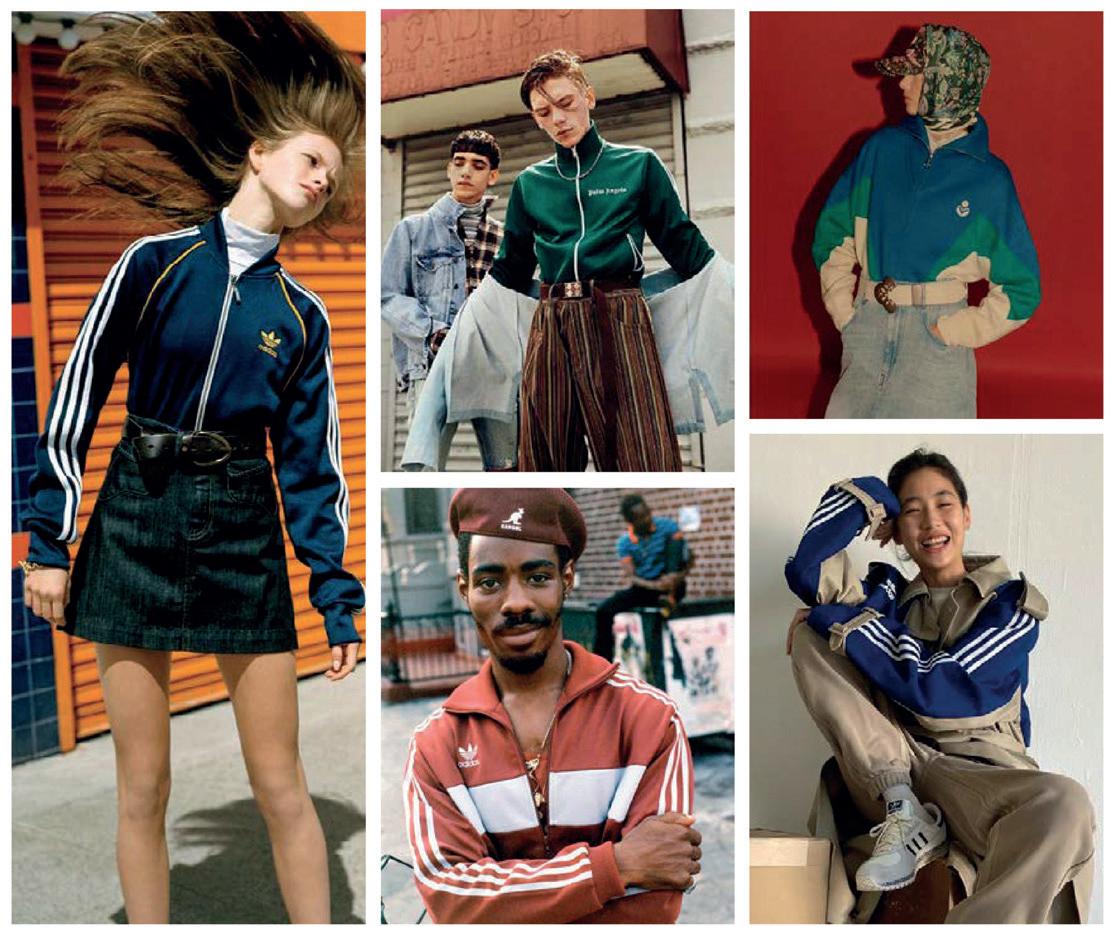 - Grafische elementen, kleurblokken, trainingspakstrepen