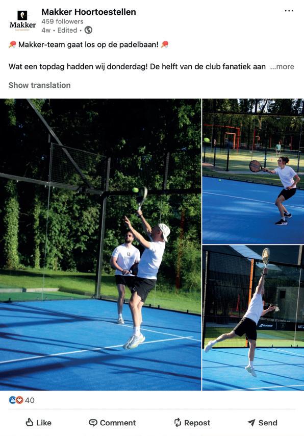 gezonde snacks. Het wordt ons echt makkelijk gemaakt om goed voor onszelf te zorgen”. Naast vrijheid en saamhorigheid noemt Lonneke ook vertrouwen als essentieel ingrediënt voor het werkplezier bij Makker. “We vertrouwen elkaar volledig. Je wordt gewaardeerd om wie je bent en wat je doet. Natuurlijk gaat er weleens iets mis, maar ook dan wordt er positief en oplossingsgericht gereageerd”. Zelf ervaart ze ook veel ruimte in het werken met verschillende merken. Er is geen enkele druk om bepaalde hoortoestellen te verkopen. “Als een klant specifiek om een merk vraagt, dan regelen we dat gewoon. Zelfs als ik persoonlijk liever iets anders zou adviseren. Uiteindelijk draait het om wat het beste is voor de klant”.