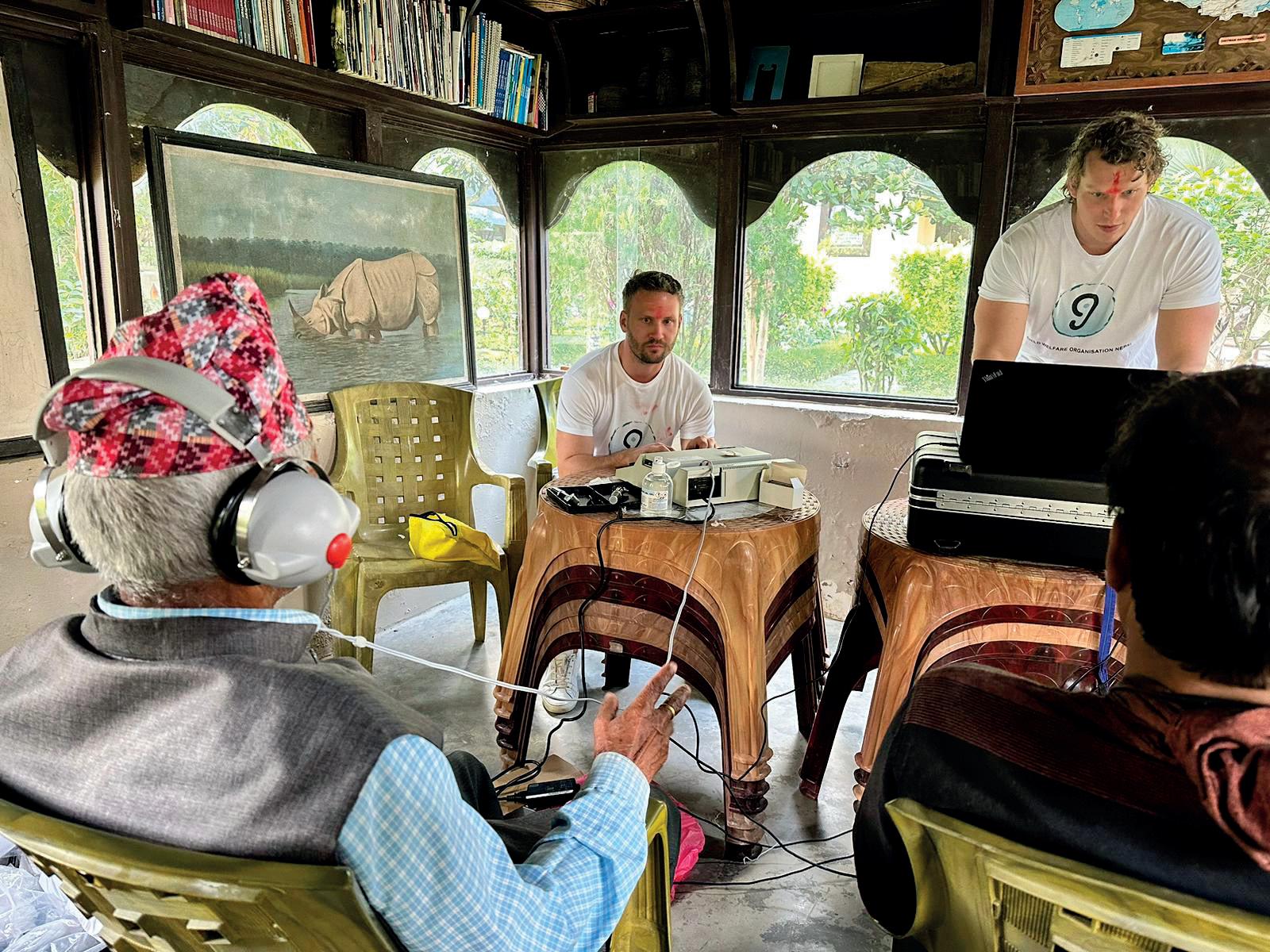 Lonneke plaatst hoortoestel bij Marten Jan