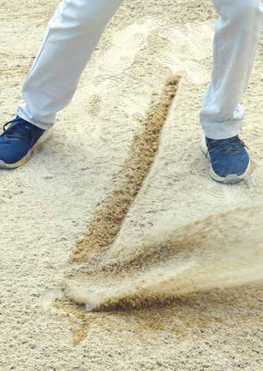 Um erro comum é diminuir a velocidade na hora do impacto. Seja confiante. Mantenha a velocidade do swing para levar a bola (e a areia) até o green. Continue o movimento dos braços até o final.