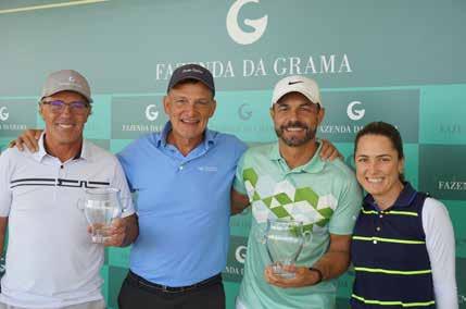 Os praticantes de golfe da Fazenda da Grama não podem se queixar da falta de opções para mostrar os resultados de seus treinos e práticas de fim de semana. Sempre tem algum torneio para ser disputado e concorrer a aumentar a coleção de troféus que tem ou gostaria de ter em casa. Em 2 de julho, por exemplo, ocor reu a Taça Mensal Duplas, que teve Fefê Kireeff e Lucas Azevedo como os dois campeões. Disputado em formato Scramble, o evento consagrou a jovem dupla com um excelente score de -13. Paulo Ronaldo e Ricar do Ribeiro foram os vice-campeões, com score de -11. O tor neio premiou também o near pin no buraco 8 e quem teve a melhor pontaria foi Alexandre Martins, a 1,40 metro do buraco. Ao final, todos puderam se confraternizar na sede do Clube de Golfe da Grama e trocar impressões sobre o desempenho de cada um ou colocar a conversa e m dia entre amigos.