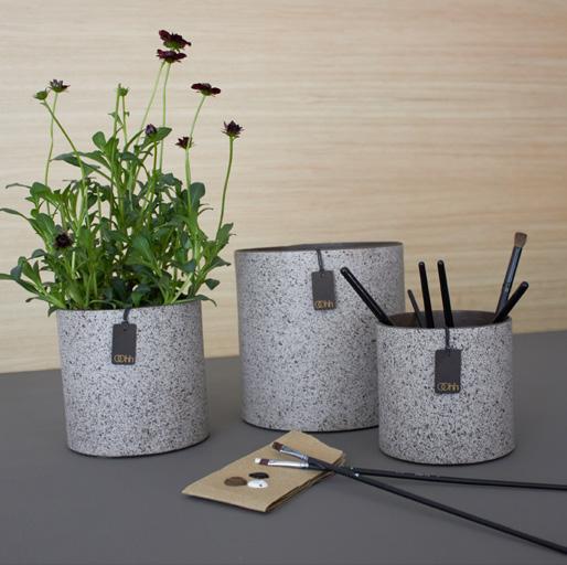100% Recycled paper pots and vases, with cement finish - Waterproof