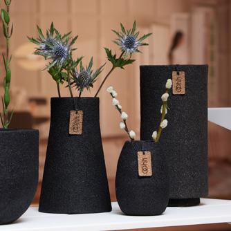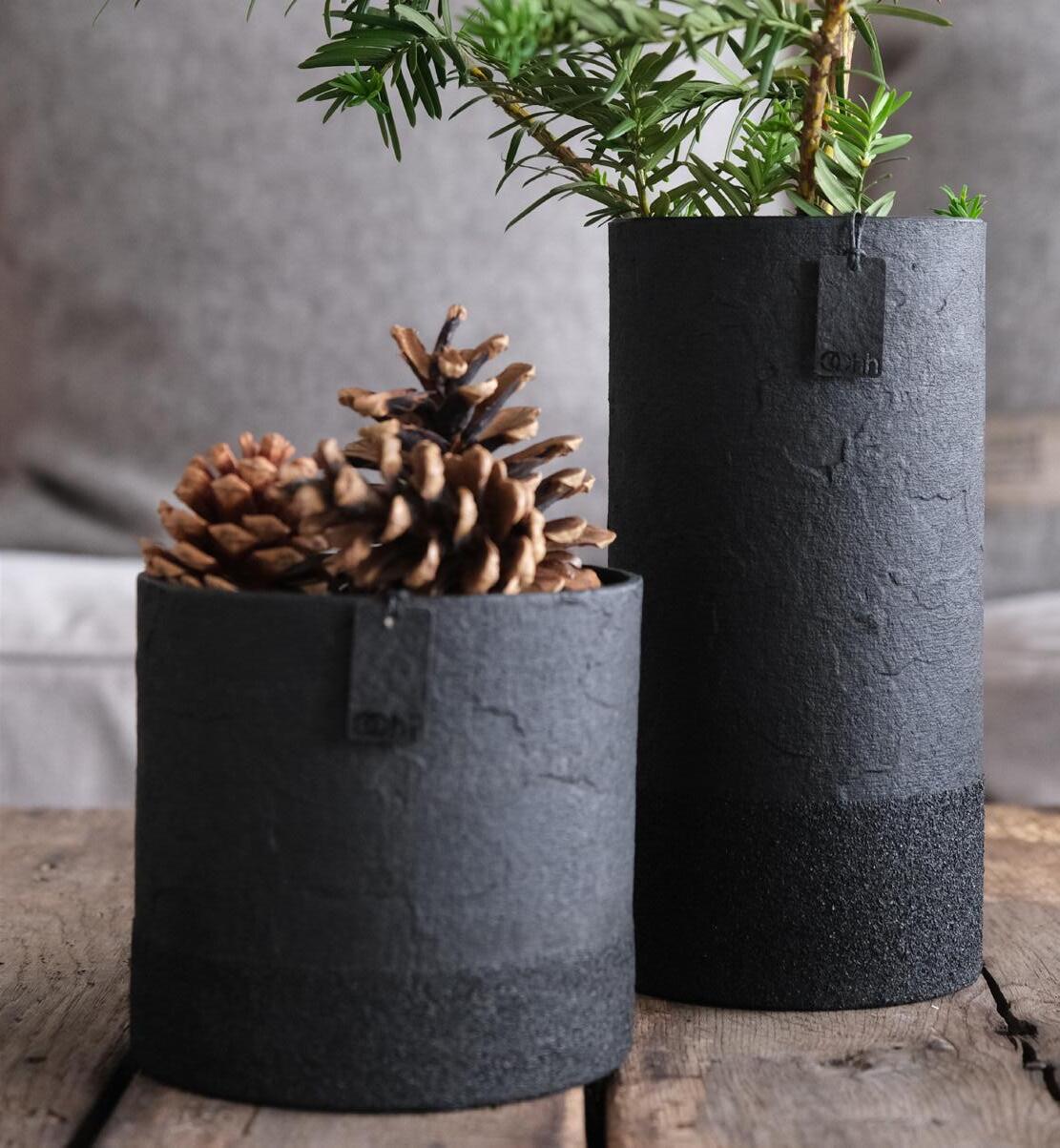 100% Recycled Paper Pots, Vases & Bowls with cement finish - Waterproof TOKB2BLK