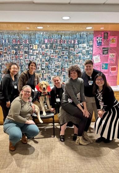 The Mount Sinai Paws & Play Care for Clinical Teams program has made steady and positive progress since the newest facility service dog, Muffin, and her primary handler, Robin O’Hare, joined the team. Our staff wellness initiative includes multiple offerings, including art therapy, mindfulness groups, and animal-assisted therapy. These groups have been very well received, providing staff with meaningful opportunities to manage stress, connect with colleagues, and prioritize self-care during the workday. The positive response to these offerings highlights the importance of intentional wellness opportunities for our staff. A highlight of the program has been the introduction of our new facility dog who has acclimated exceptionally well to the environment. Staff engagement with the animal-assisted therapy sessions has been enthusiastic, with many sharing that the dog’s presence is calming, grounding, and therapeutic. Participants report reduced stress levels, improved that allows them to return to their work feeling refreshed and focused. Overall, staff have embraced these wellness opportunities and continue to express appreciation for the supportive, restorative atmosphere they create. With the success of the current programming, we look forward to expanding and enhancing these offerings, with more wellness initiatives planned for 2026.