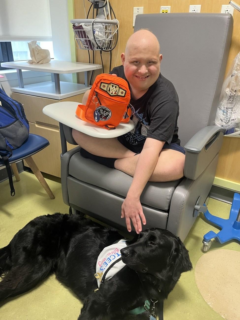 During patient Ronaldo’s long hospitalization, he found comfort in two of the Child Life and Creative Arts Therapy Department’s beloved programs, KidZone TV (KZTV) and animal assisted therapy (AAT).