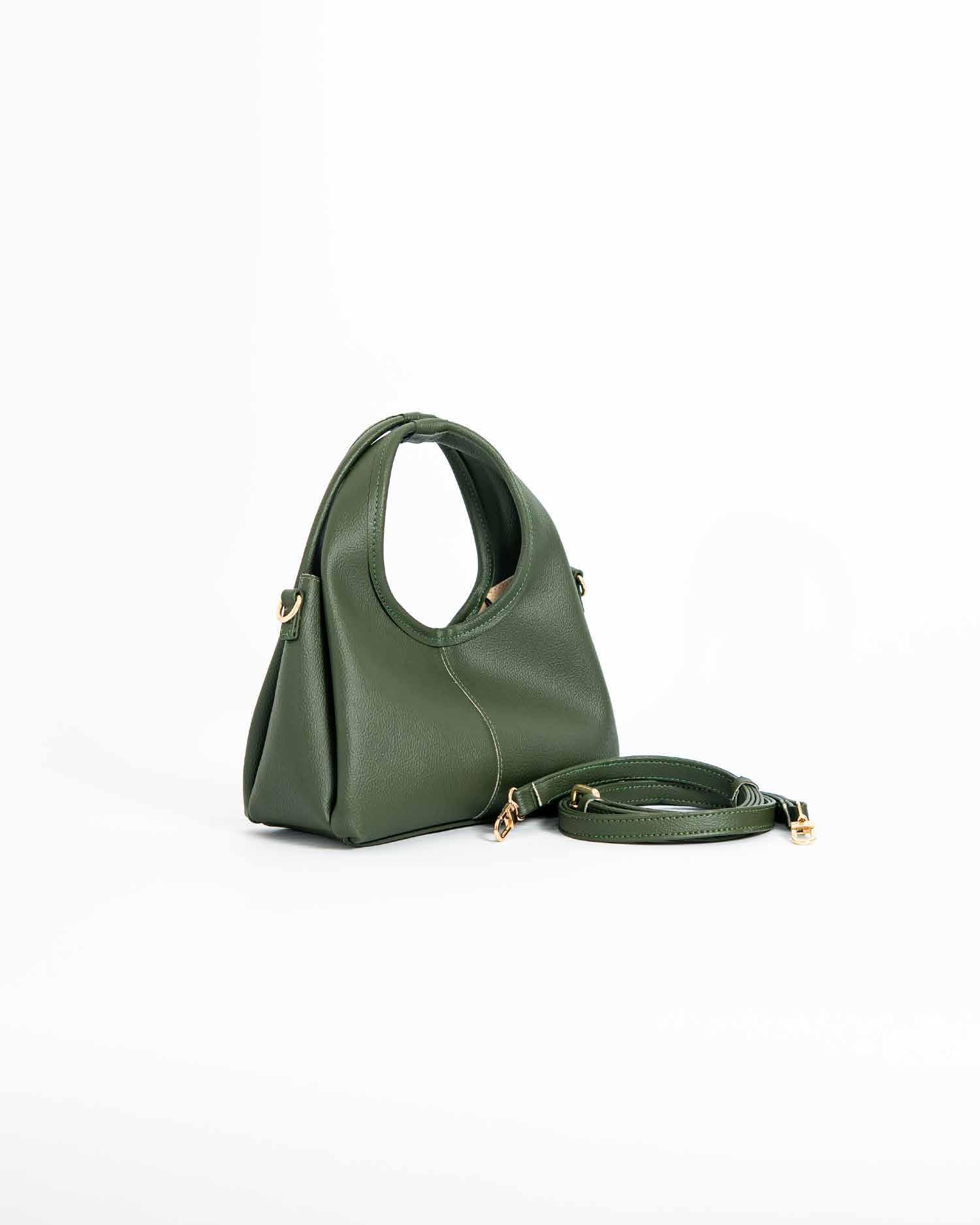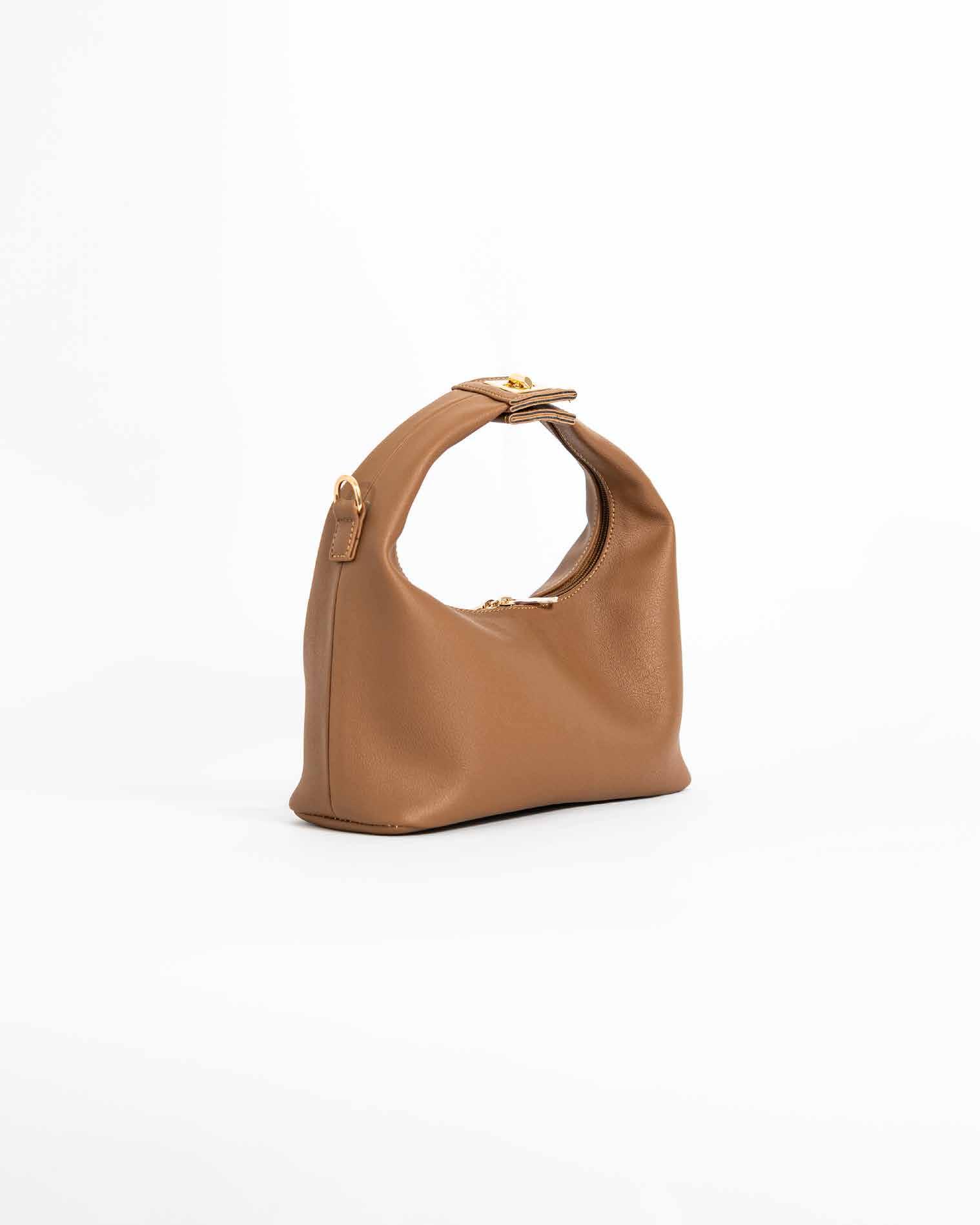 Mini bag que transforma cualquier look, su silueta redondeada y sus detalles dorados la convierten en el accesorio que siempre quieres tener a la mano, ligera, compacta y con correa desmontable para usarla como quieras