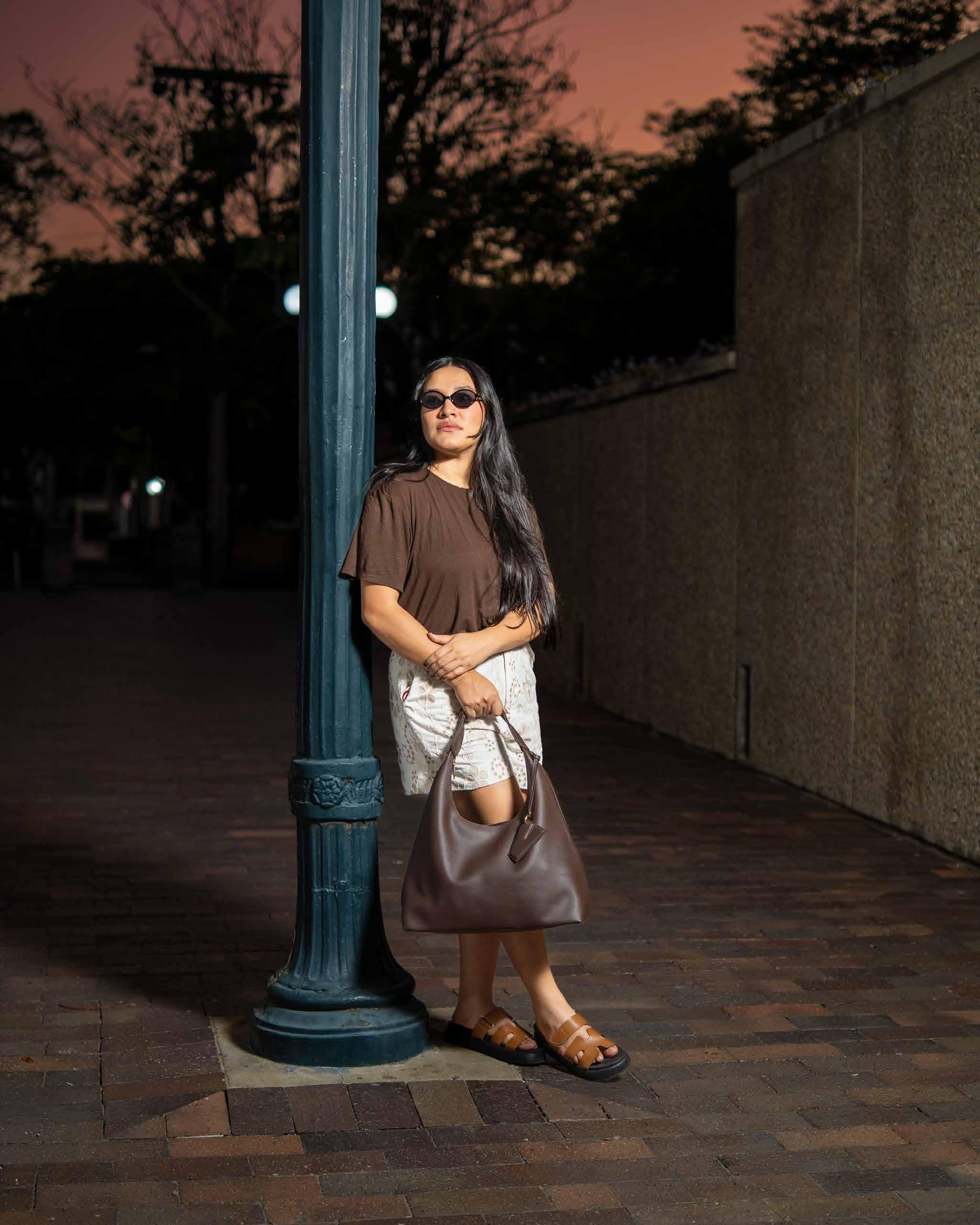 Cartera que se reconoce desde lejos, su asa circular y su costura central la convierten en una pieza con identidad propia, sofisticada sin esfuerzo y cómoda sin sacrificar el estilo