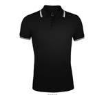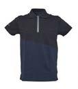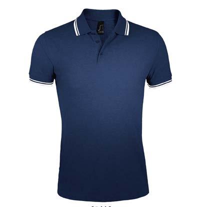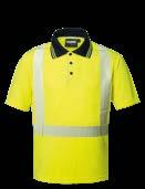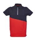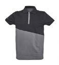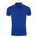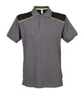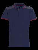 Rinforzo sulla parte posteriore del collo con fascia parasudore interna. Collo di colore in contrasto chiuso con due bottoni, giromanica a costina con profilo di colore in contrasto. Spacchetti laterali al fondo con inserto di colore in contrasto.