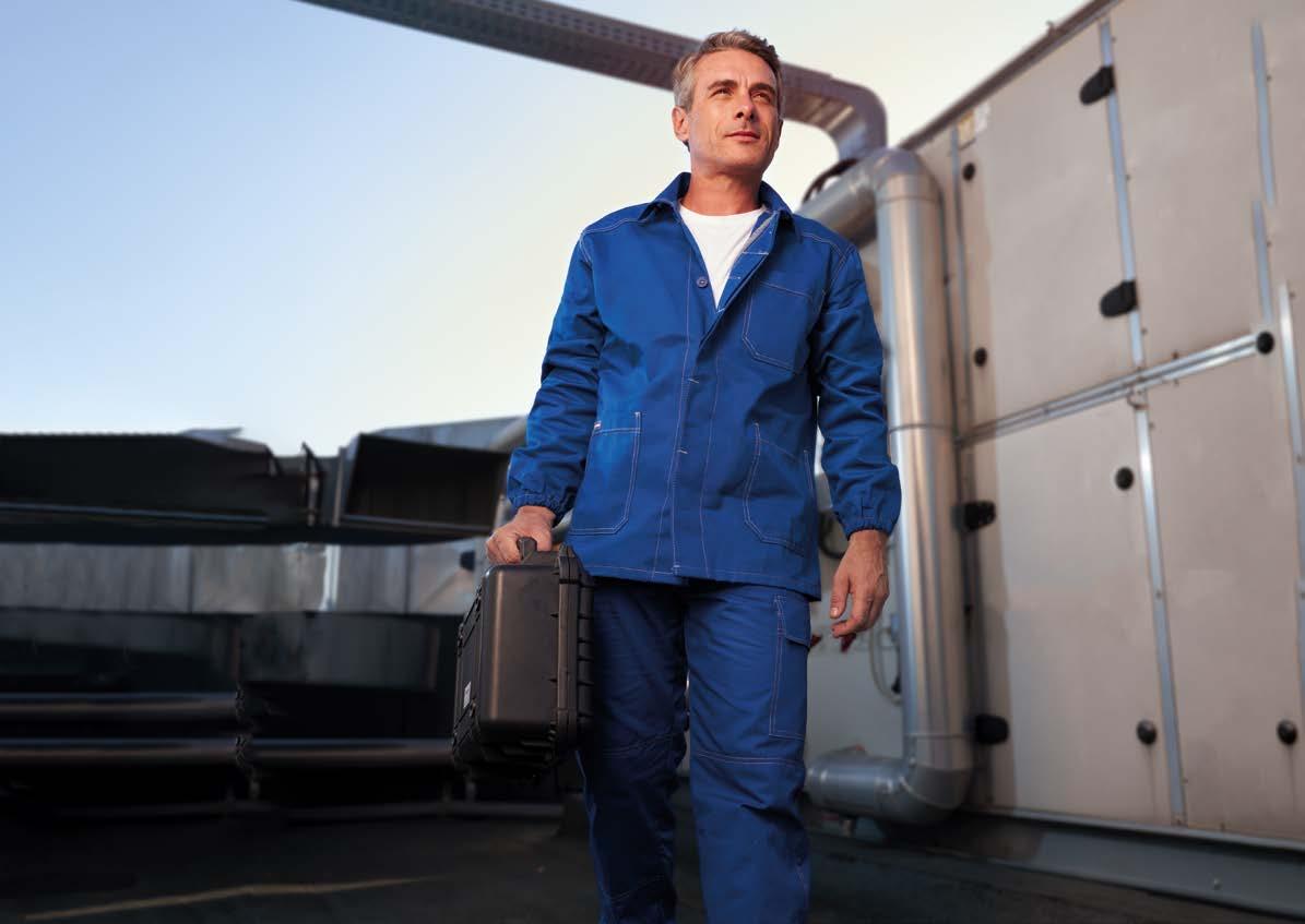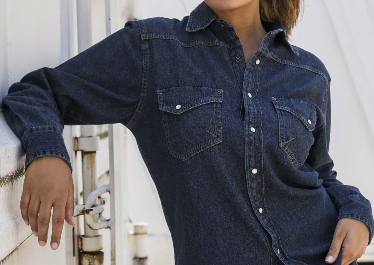Tessuto denim con trattamento stone washed. Chiusura anteriore con bottoni automatici, carré anteriore e posteriore, due taschini applicati al petto chiusi con aletta e bottone automatico. Polsi chiusi con doppio bottone automatico ed ulteriore bottone automatico sulla manica. Travette di rinforzo.