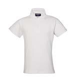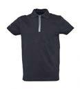 Collo e polsini a costine 1x1, nastro di rinforzo sul collo, maniche corte, patta con 2 bottoni tono su tono perlati, tagliata e cucita, bottone di scorta sulla cucitura interna.
