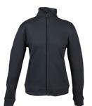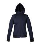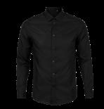 Collo e polsini a costine 1x1, maniche lunghe, patta con 2 bottoni, nastro all’interno del colletto.