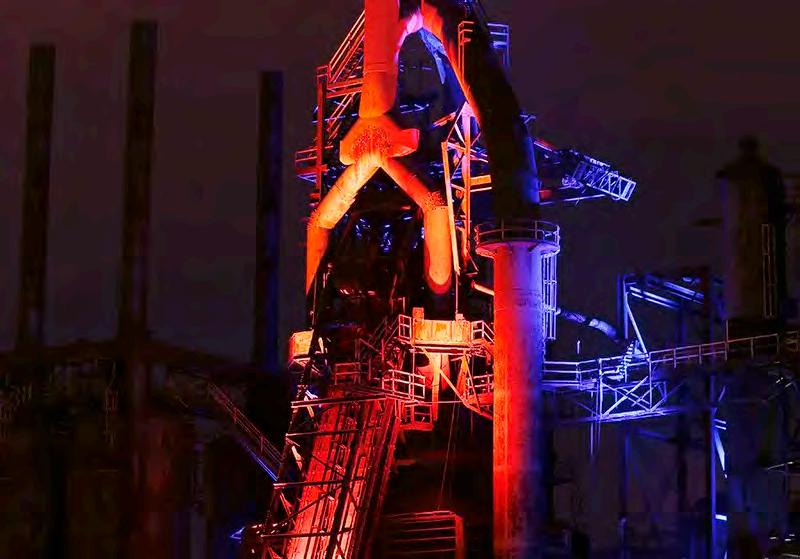 2.9 - An image of one of the many lighting installation events that occur on site at Duisburg-Nord Landscape Park throughout the year. Thomas Berns, “Lighting Explosion”.