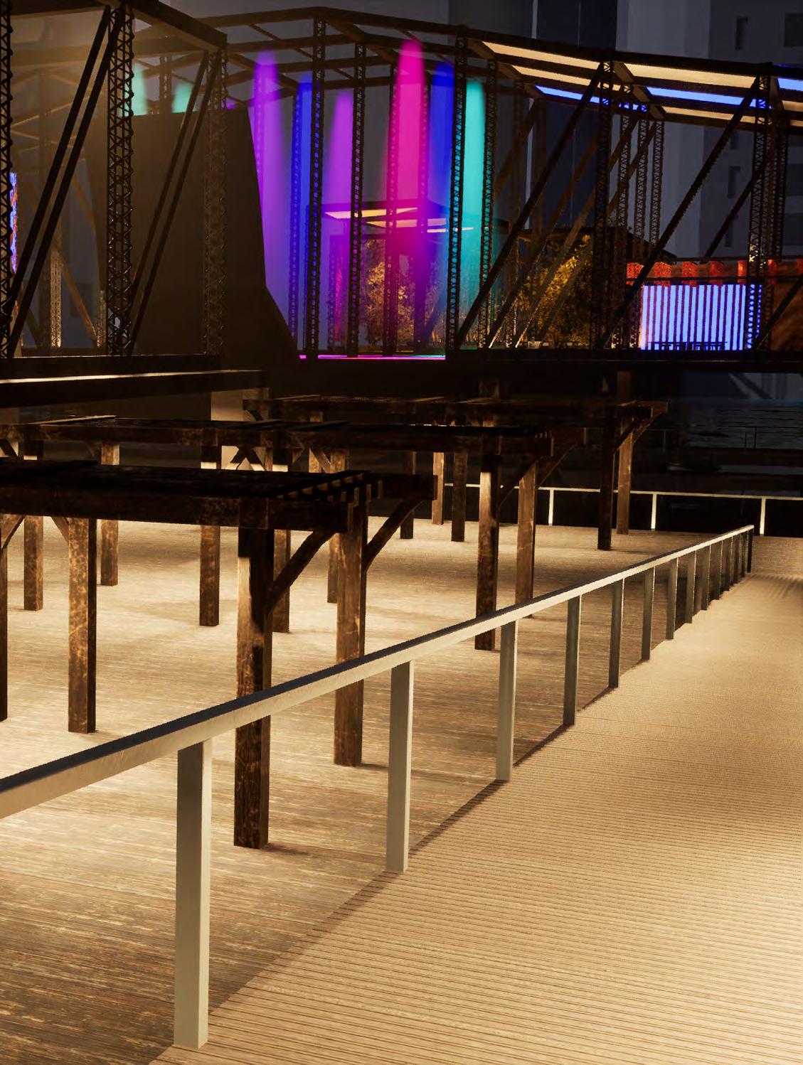Across the world, massive industrial remnants lie abandoned, creating various negative impacts on their surroundings. However, architectural lighting can transform these spaces into attractive and useful areas that benefit the public With the right lighting, these sites can be adapted to create a variety of atmospheres that enhance the movements and emotions associated with urban spaces. Through the reclamation of these industrial zones, we can create animated environments that energize our daily activities in a fun new manner.