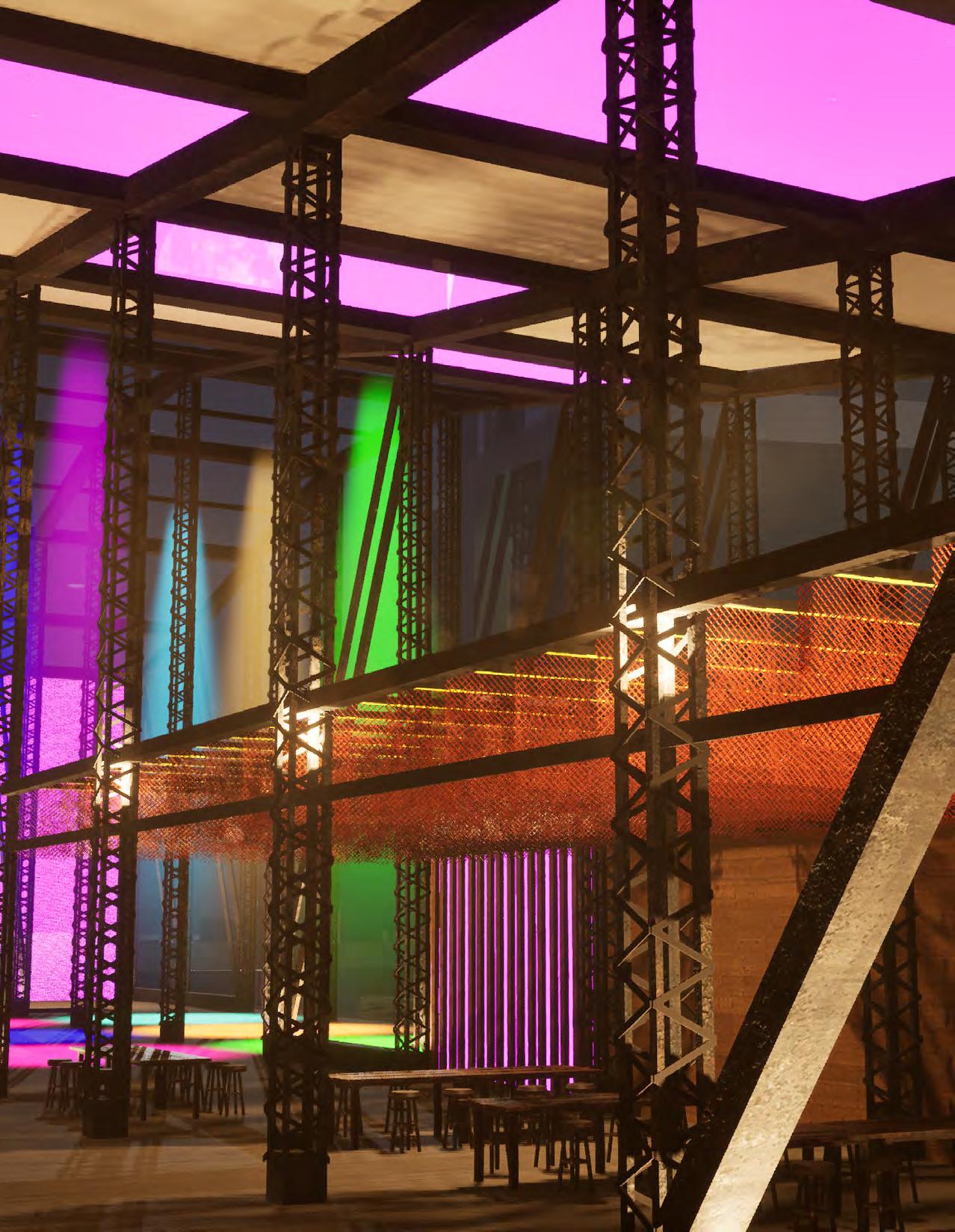 Throughout the world, urban centers and countrysides have left abandoned industrial zones to rust and decay throughout. Perception of these spaces is tied to the loss of opportunities for what these mills and working sites used to represent. As architects, we have the ability to shift the perception of space through form and materials. Thus, we can be powerful advocates with a unique tool set of skills to reclaim and revitalize these castaway environments. For hundreds of years, we have been chasing control over our environments, a specific factor is the control over light. Through light, it shifts our visual perception of the world, yet it goes beyond just the visual spectrum. Light has the ability to affect emotions, movement, and senses of active vs. relaxed no matter if visual senses are engaged, it is a whole body experience. Utilizing light can be a terrific tool for the reclamation of these industrial sites, allowing communities to further utilize these places past just the sunlight hours, but also into the hours of darkness Softness and hardness, atmospheres