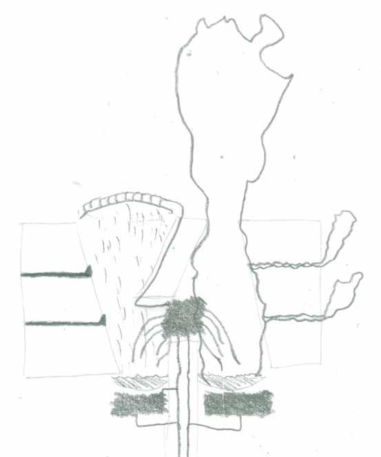 > Transect through three site of intervention, transporting people and produce to the shore, and water back.