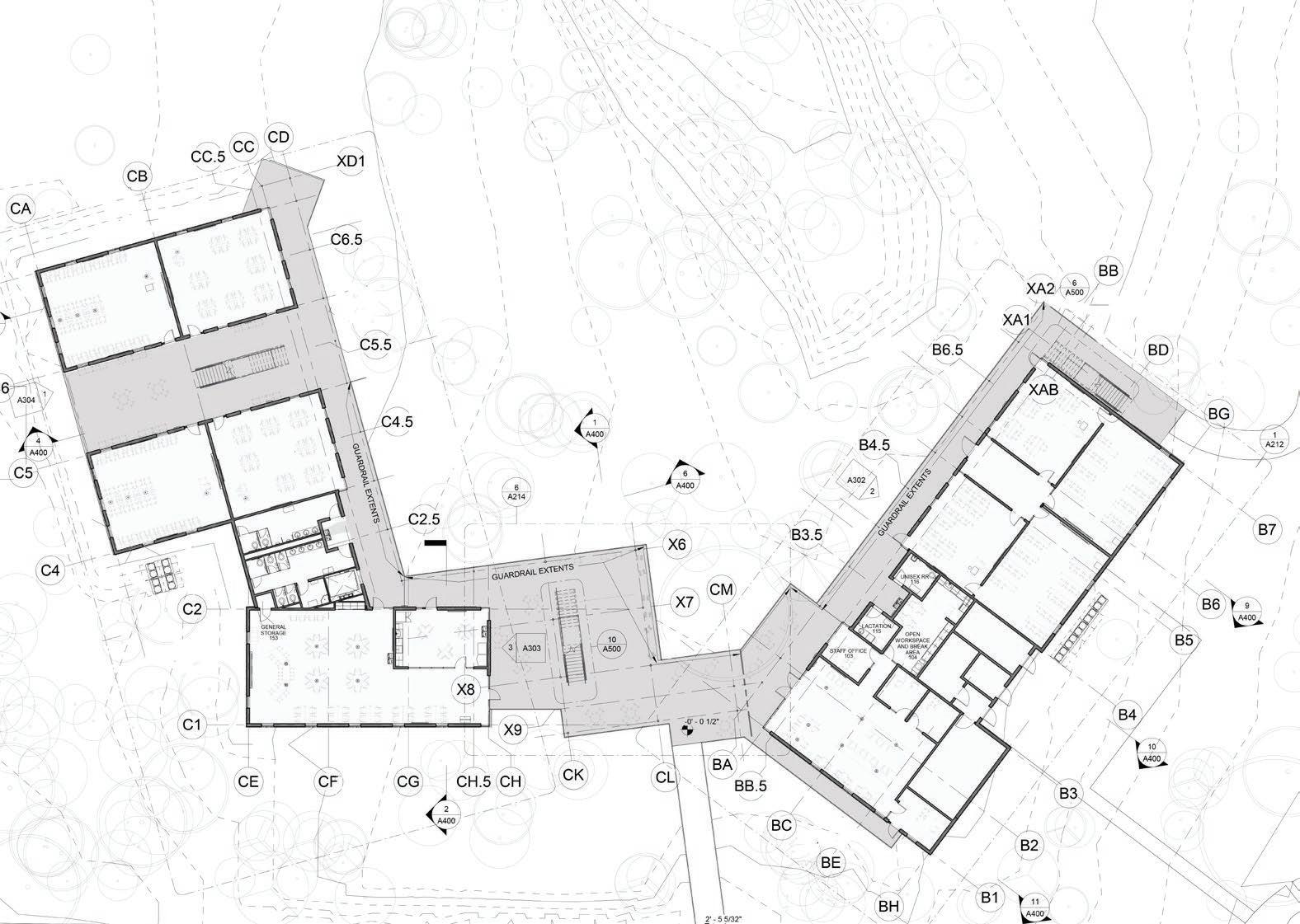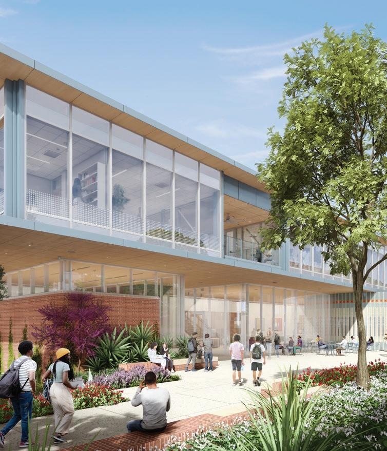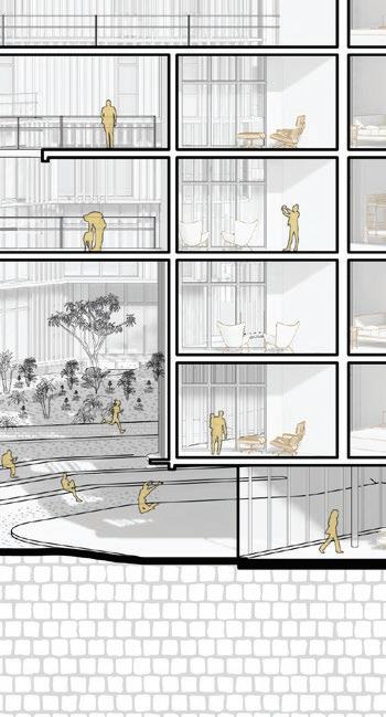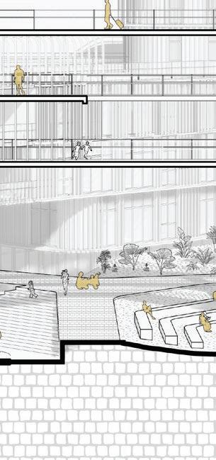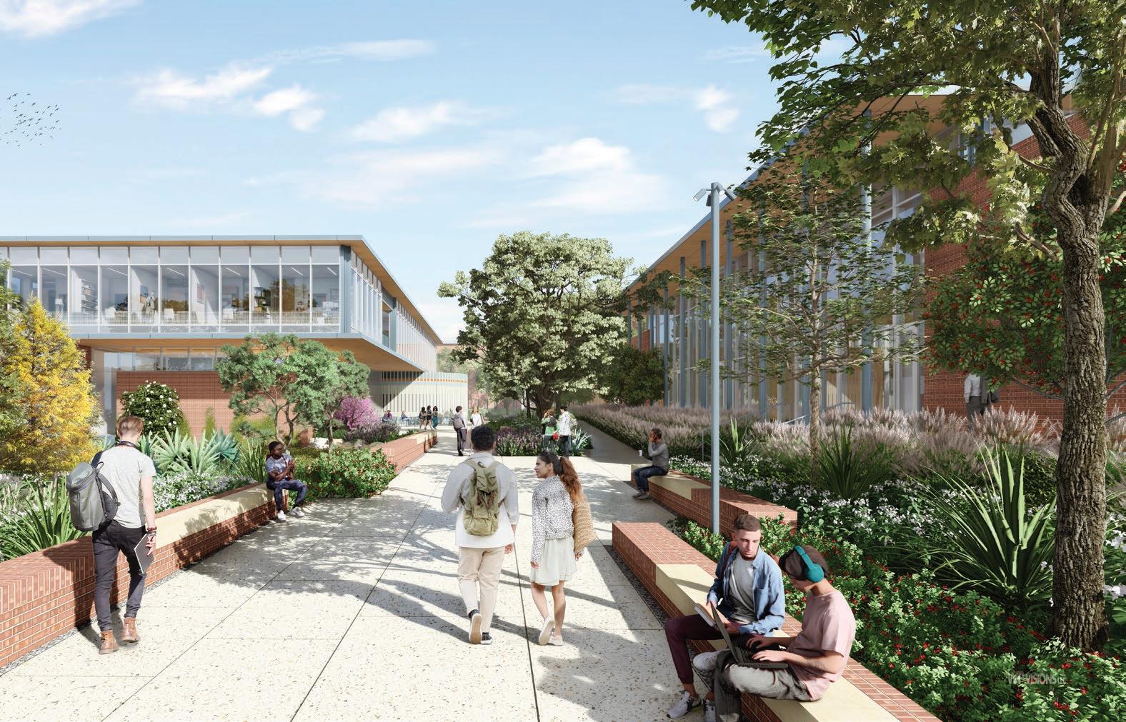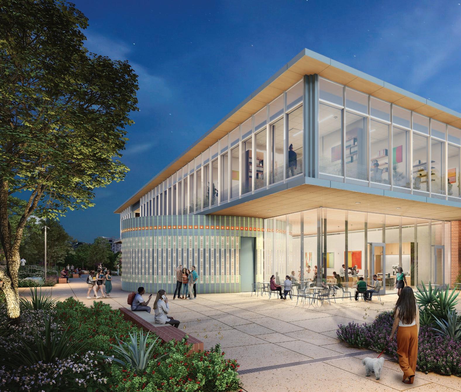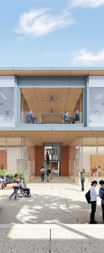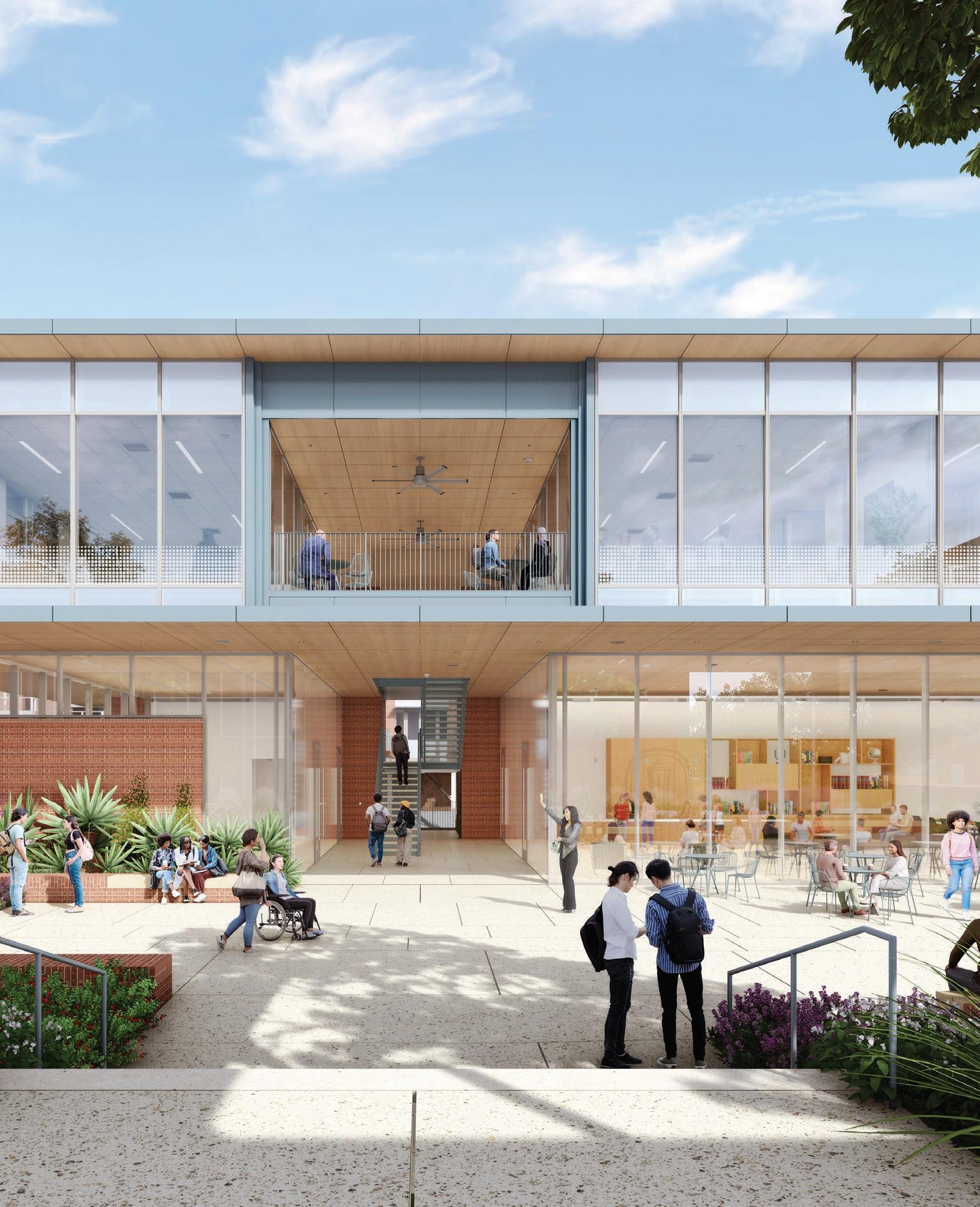 A connection to the existing library creates a campus loop itinerary for visitors, students and staff.