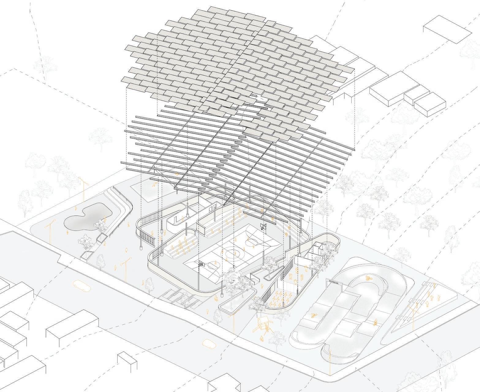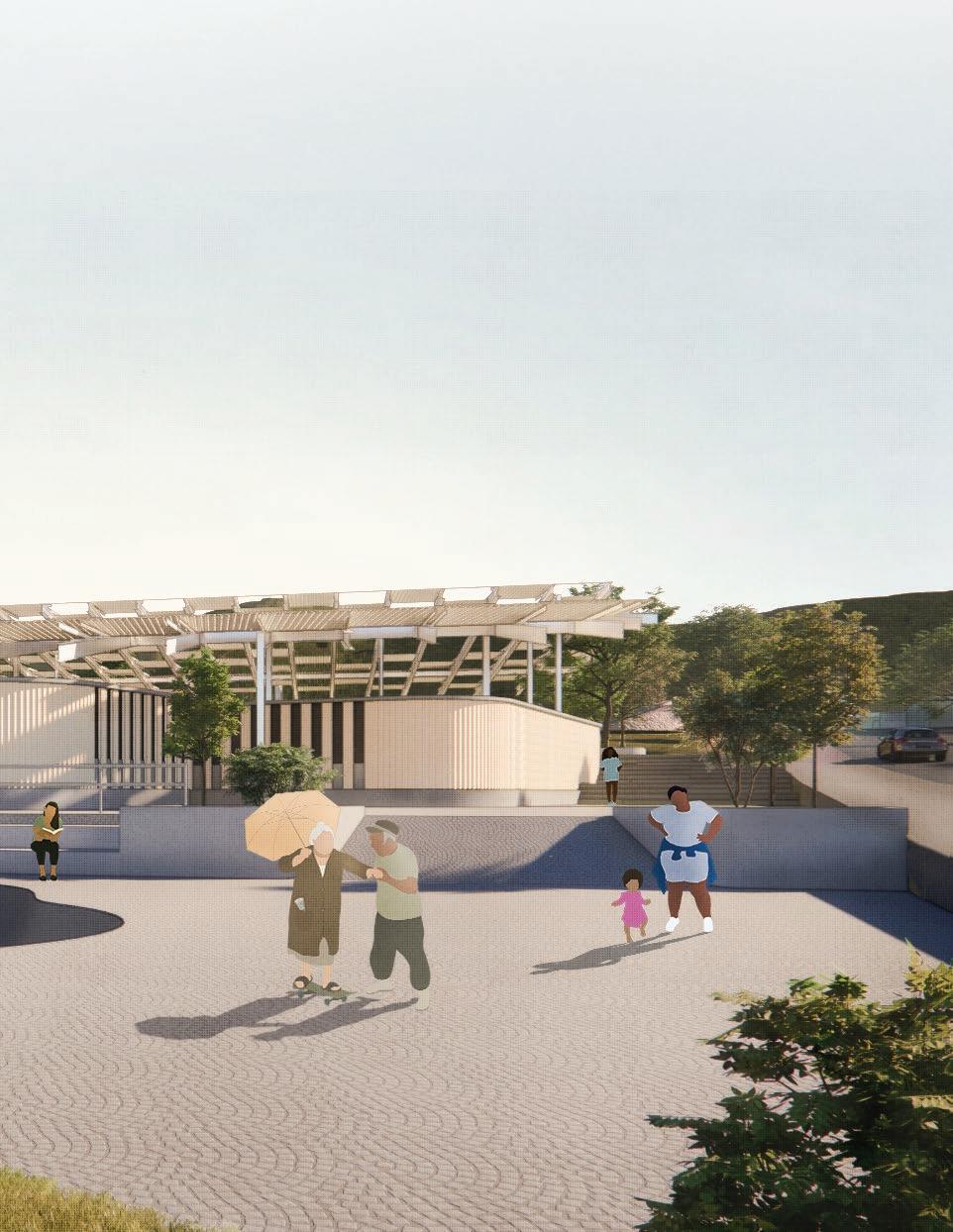 The “Nós” Sports Center, located in Felipe Camarão, Natal/ RN, is a dynamic sports complex inspired by the ribbons from the “Auto do Boi de Reis,” symbolizing unity and cultural ties. The facility aims to strengthen local identity through its comprehensive sports amenities, including a multi-purpose court, recreational spaces, and administrative areas. The theme of “nós” (meaning “we” or “us”) embodies community connection, reflected in the organic flow of the design. With flexible architecture for future growth and sustainable solutions tailored to the local climate, the project preserves cultural heritage while fostering positive community transformation.