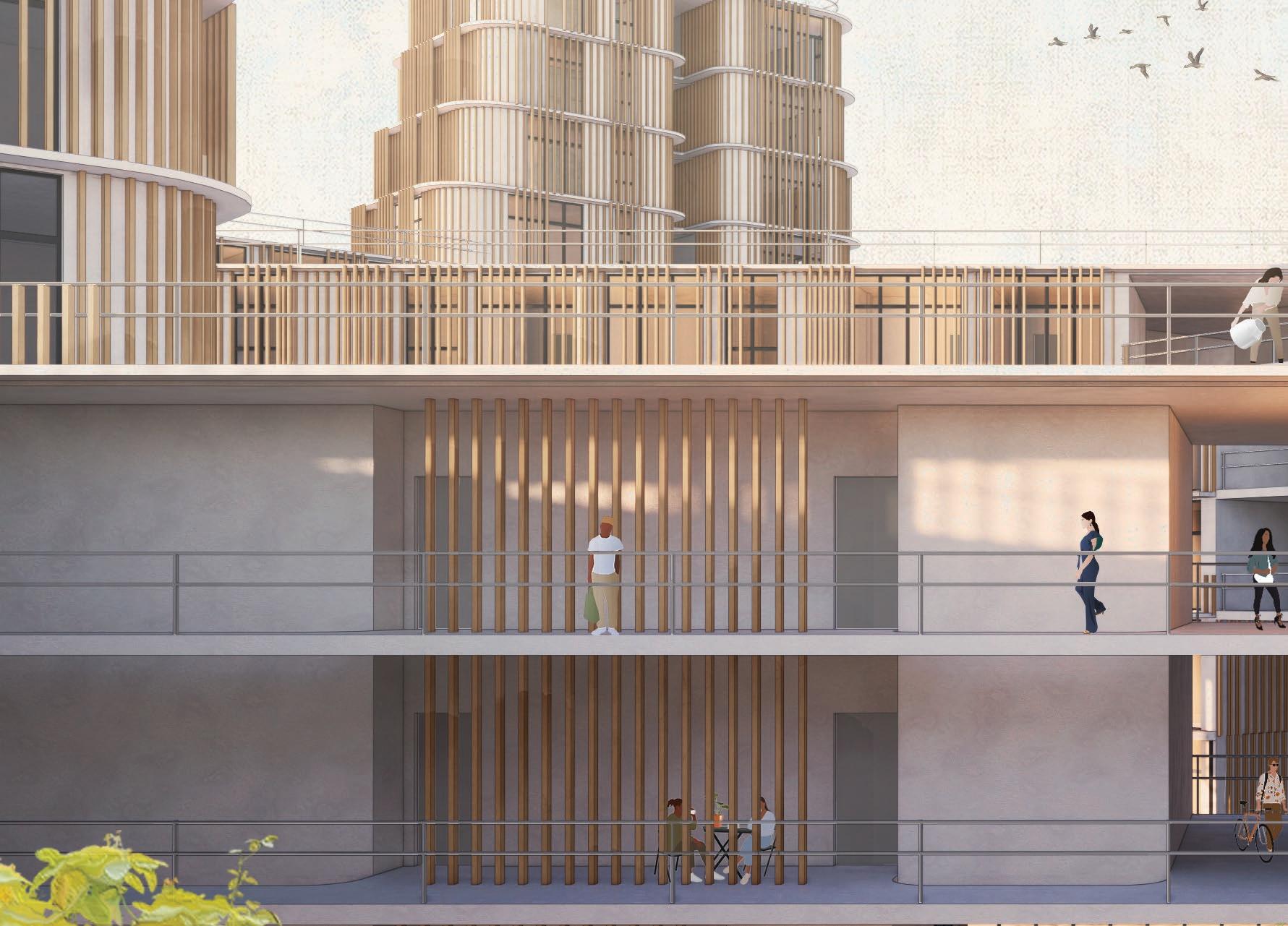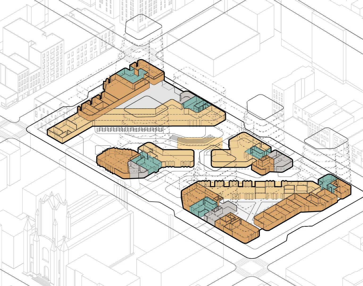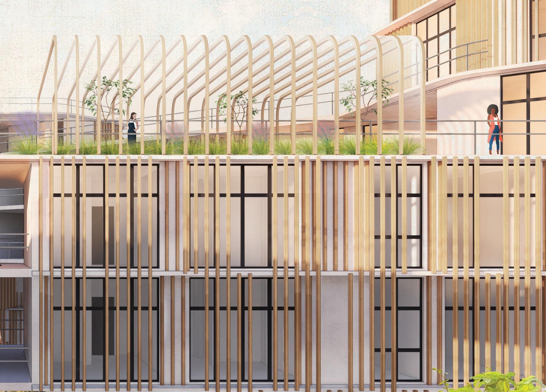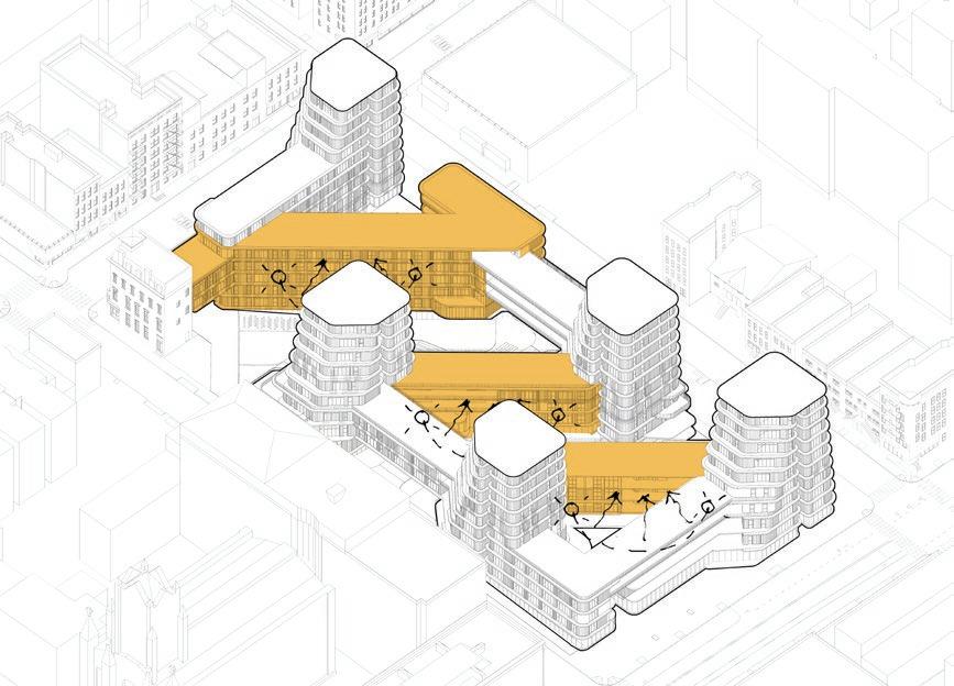 The design was conceived from the ground up. The ground floor is destined for community resources and local commerces that are linked to anchor institutions in the Bronx. The shophouse typology allows the owners of small businesses to live in the complex. Finally, The massing creates density in mound-shaped volumes, allowing less shadow projection area onto the facade, and maximizing the number of units with access to sunlight and ventilation.