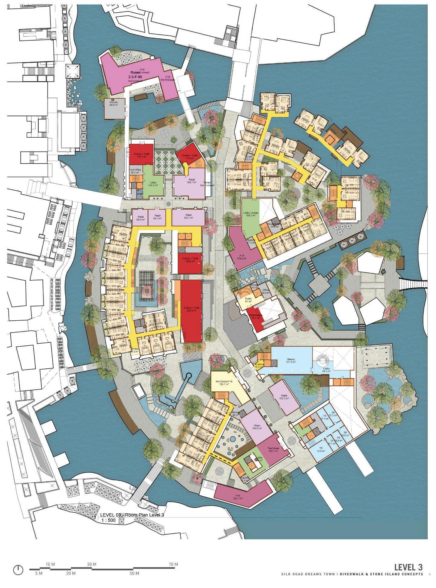Stone Island is a key element of a larger development in Lijiang, China, designed to harness the region’s natural resources to stimulate local energy and attract tourism. The island features a central plaza that seamlessly blends diverse hospitality experiences, including Heritage, Conservatory, and Water hotels. This dynamic plaza also hosts a range of food and beverage offerings, retail spaces, and leisure facilities.