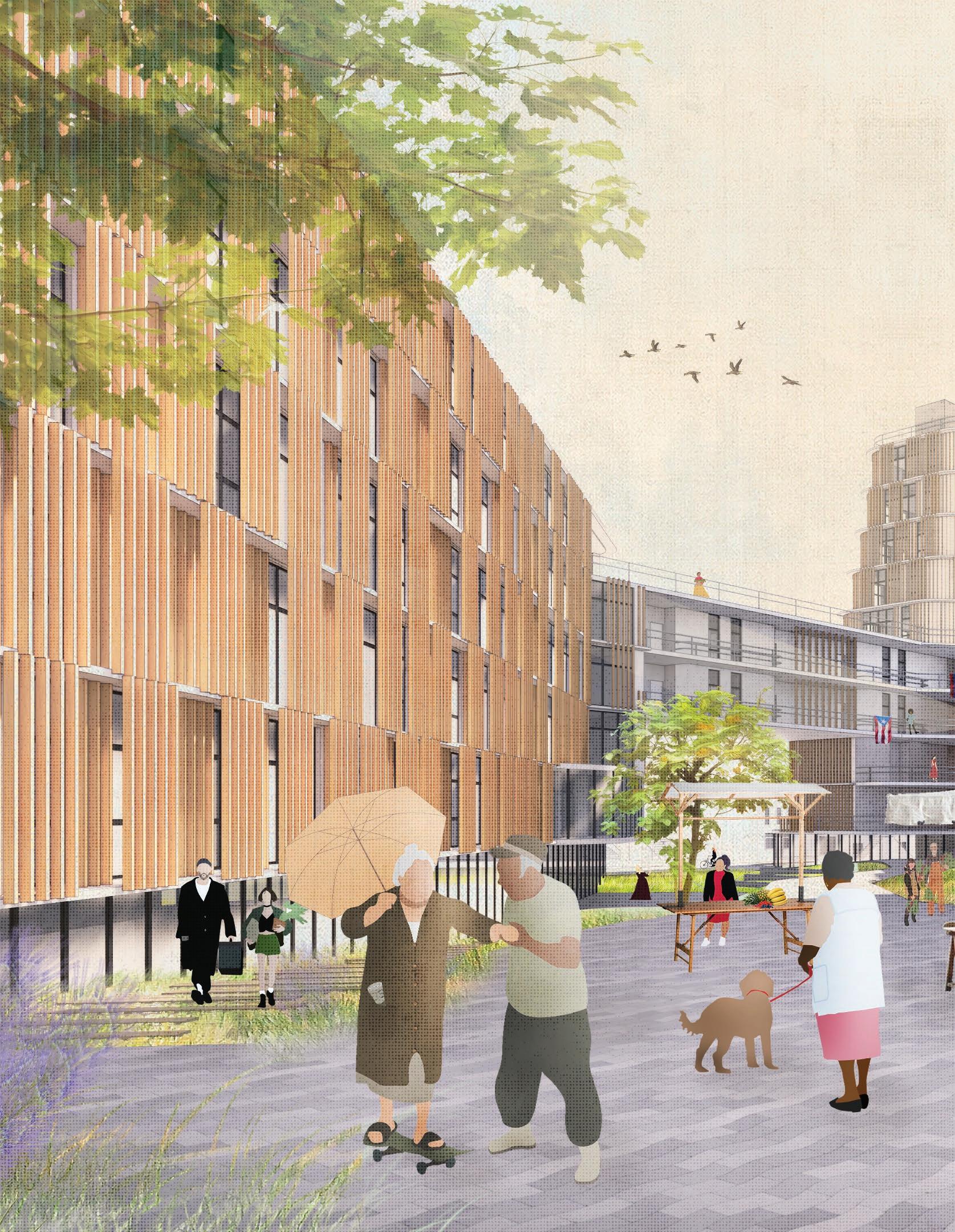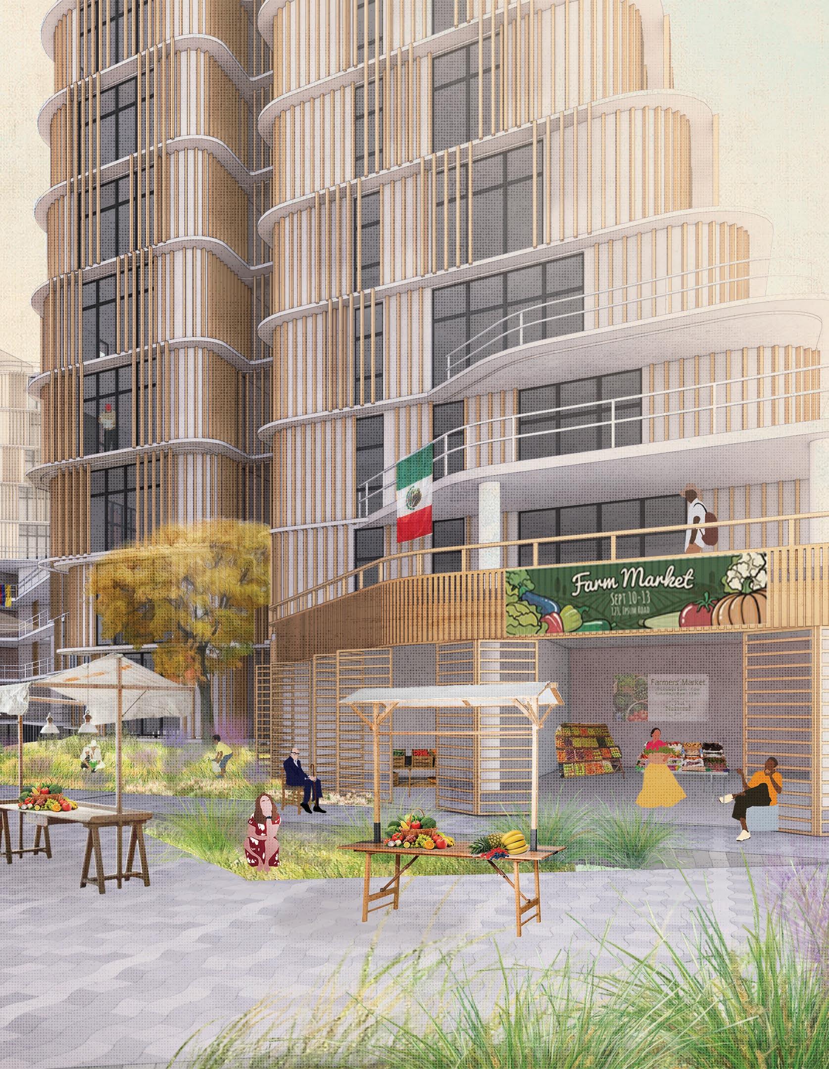 Ongoing gentrification in the South Bronx has led to diminished local pride. This housing proposal aims to help reversing this by creating a hub that fosters a democratic economy and strengthens local identity.