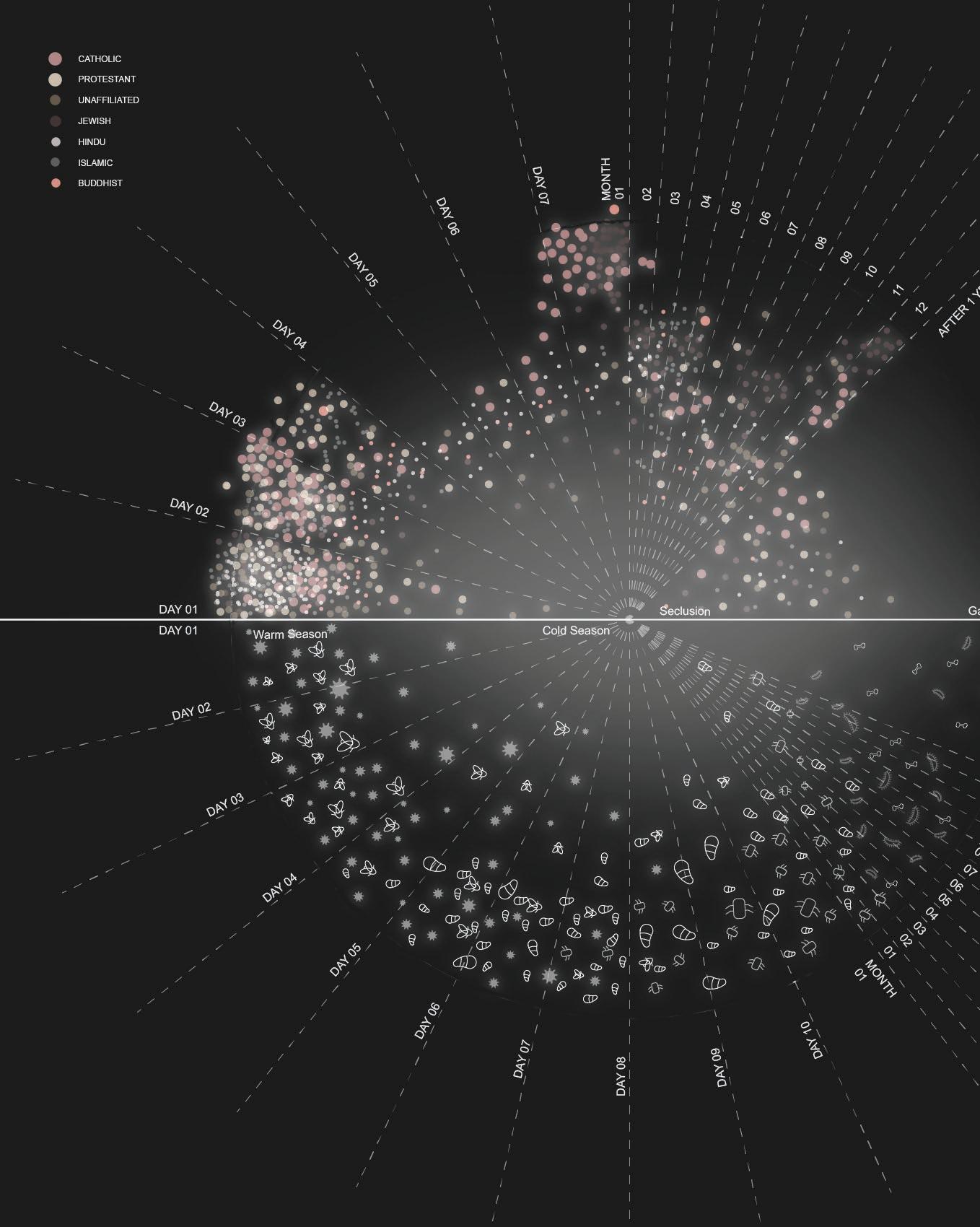 Grief and decomposition create a cyclical process of life and death, akin to the Ouroboros, an ancient symbol of time’s endless cycle of destruction and rebirth. Hart Island, near the Bronx and city, embodies this concept in an unconventional form.