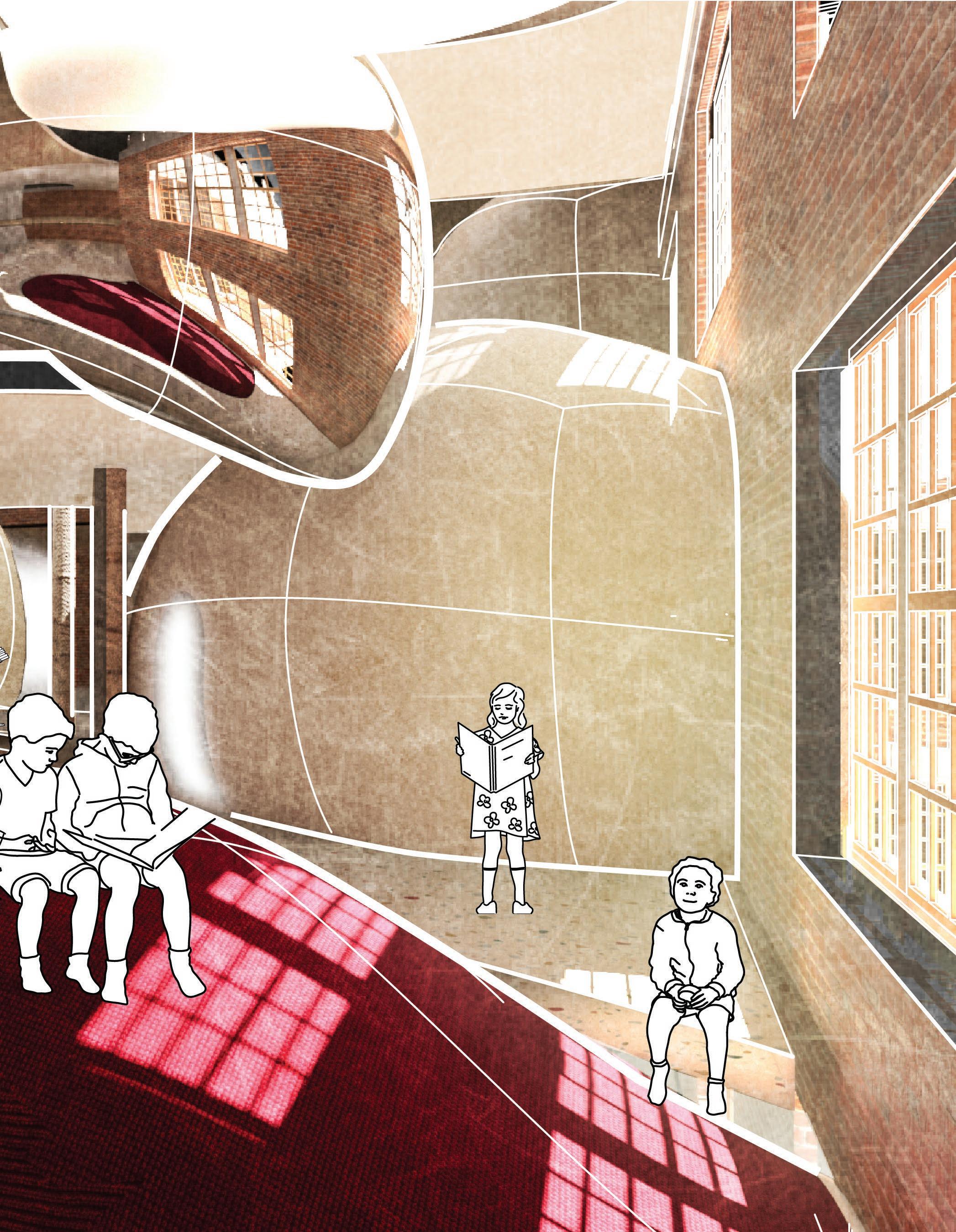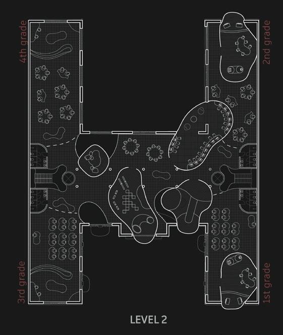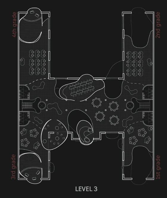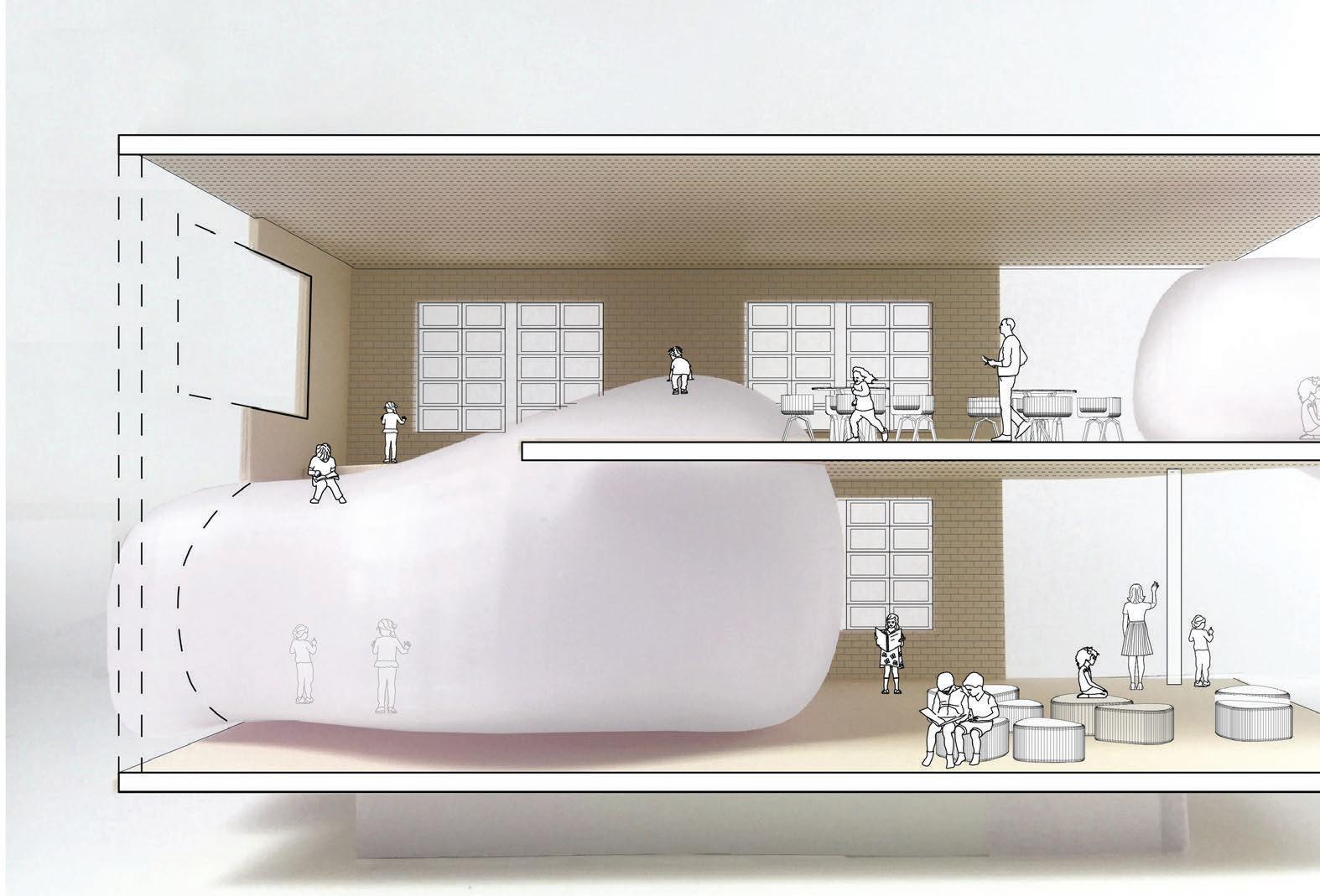 This project introduces a new pedagogy to the school based on Montessori education, focusing on the individuality of the student and sensorial sensitivity. Operating with an outside-in approach, new topological structures were strategically introduced to the current building. They create new field conditions, taking into consideration light, movement, and accumulation. Overall, the new P.S. 64 should create a ludic and stimulating environment that embodies diversity and praises the complexity of our human neural system.