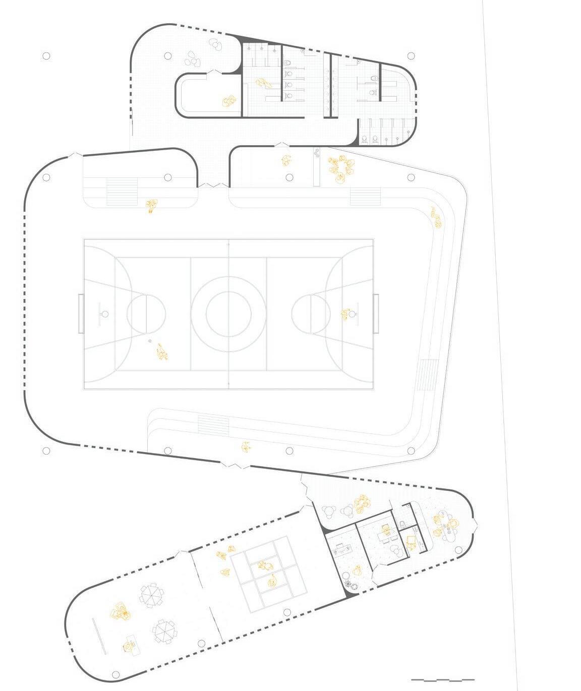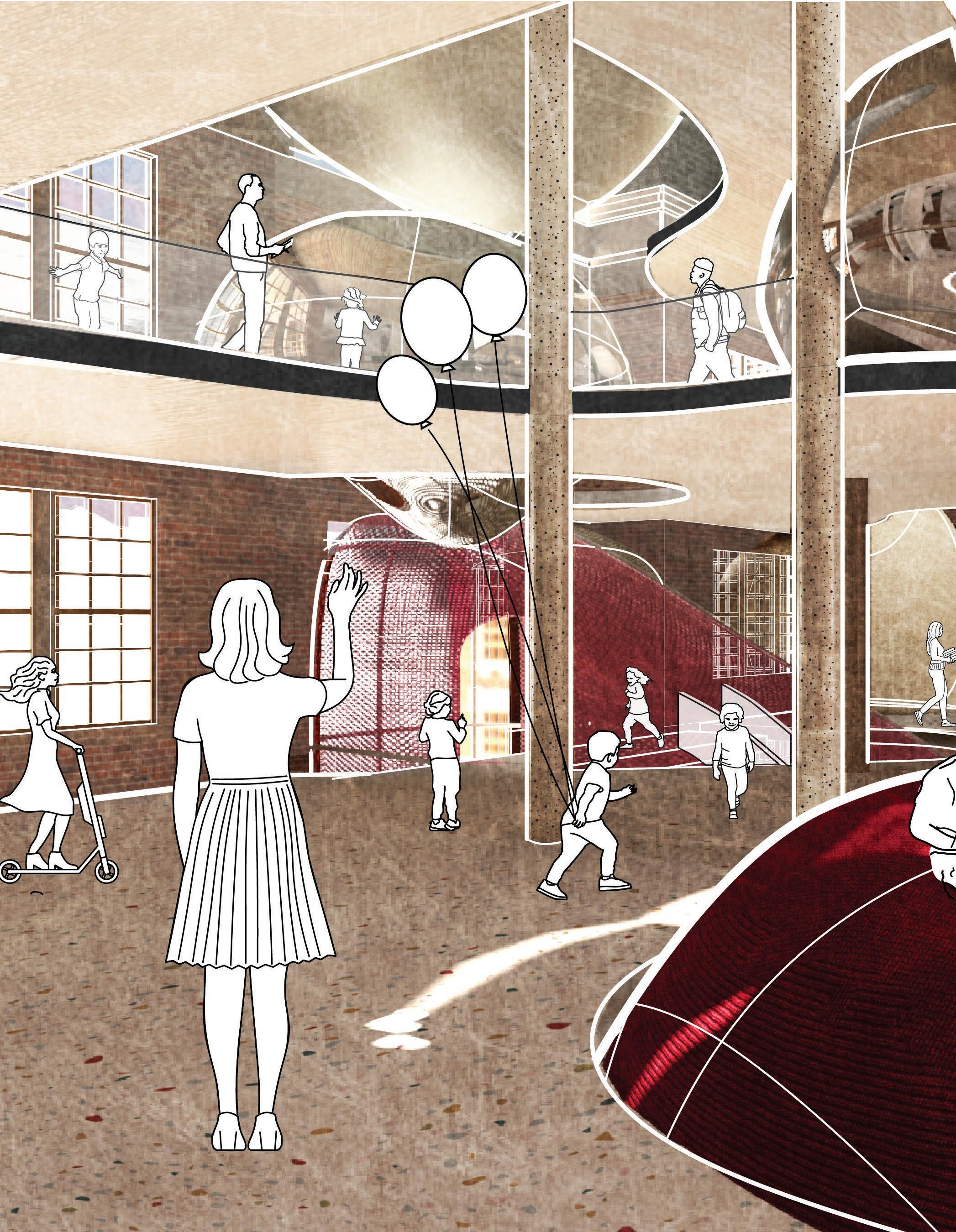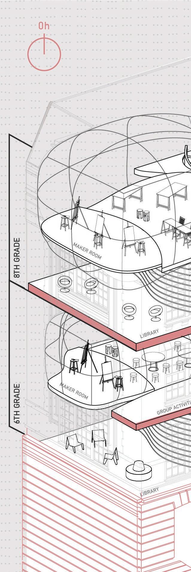 This project introduces a new pedagogy to the school based on Montessori education, focusing on the individuality of the student and sensorial sensitivity. Operating with an outside-in approach, new topological structures were strategically introduced to the current building. They create new field conditions, taking into consideration light, movement, and accumulation. Overall, the new P.S. 64 should create a ludic and stimulating environment that embodies diversity and praises the complexity of our human neural system.
