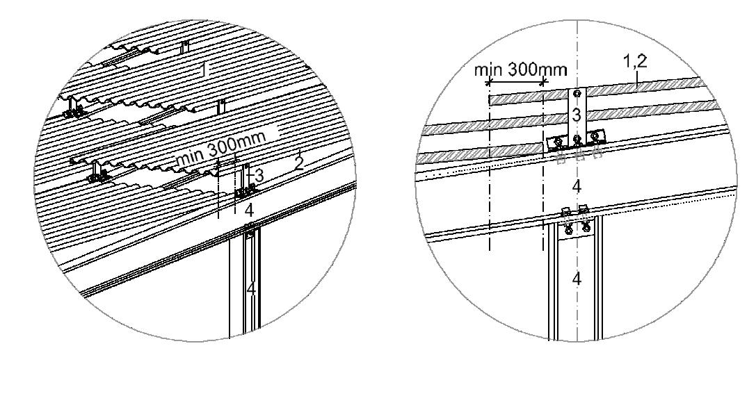 2. Brasilit Maxiplac Tile 460 mm x 210 mm, Fixed on Wooden Purlins with a minimum Section of 5 cm x 5 cm using 8 mm Galvanized Steel Screws and Elastic Sealing