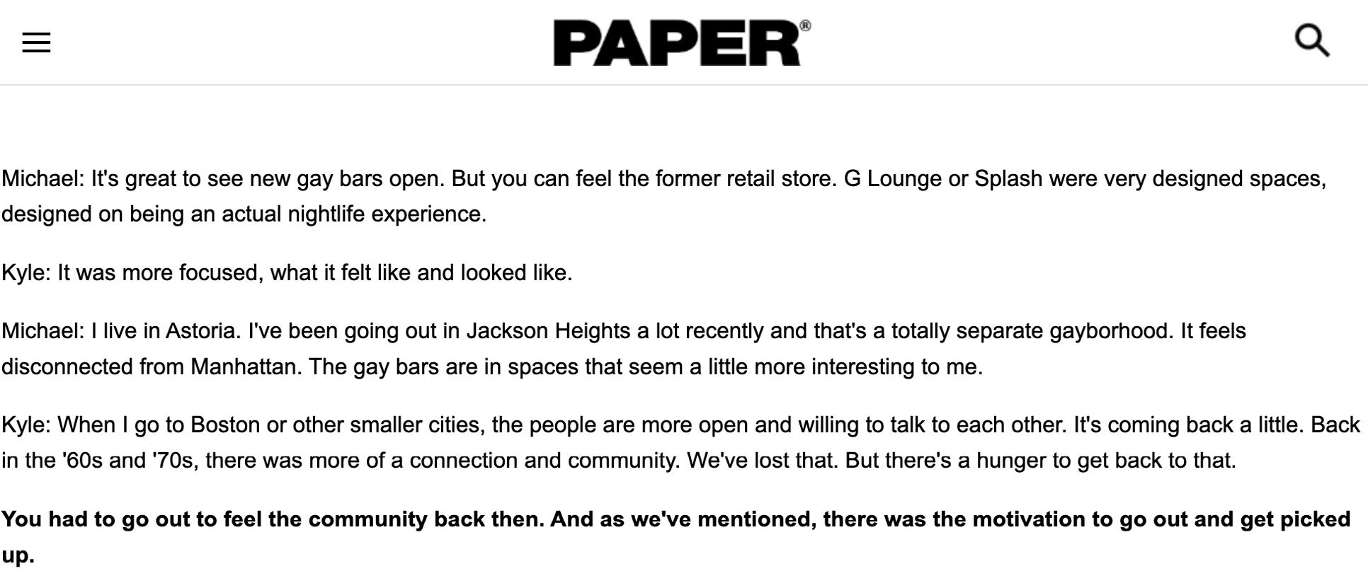 The hedonistic spirit that fueled much queer nightlife has been pivotal in shaping its legacy As Michael Ryan and Kyle Supley discuss in Paper Magazine’s Remembering the Lost Bars of NYC these venues were places of unapologetic celebration. Clubs like the Paradise Garage and venues that hosted voguing battles were not just places to dance they were arenas where queer and trans people of color redefined culture on their terms. Yet, a conversation about the attenuation of these spaces must be had. As gentrification transforms neighborhoods, queer spaces have and continue to risk the loss of the rawness/vibrancy in which they emerged from replaced by venues designed to cater to broader audiences at the expense of queer authenticity.